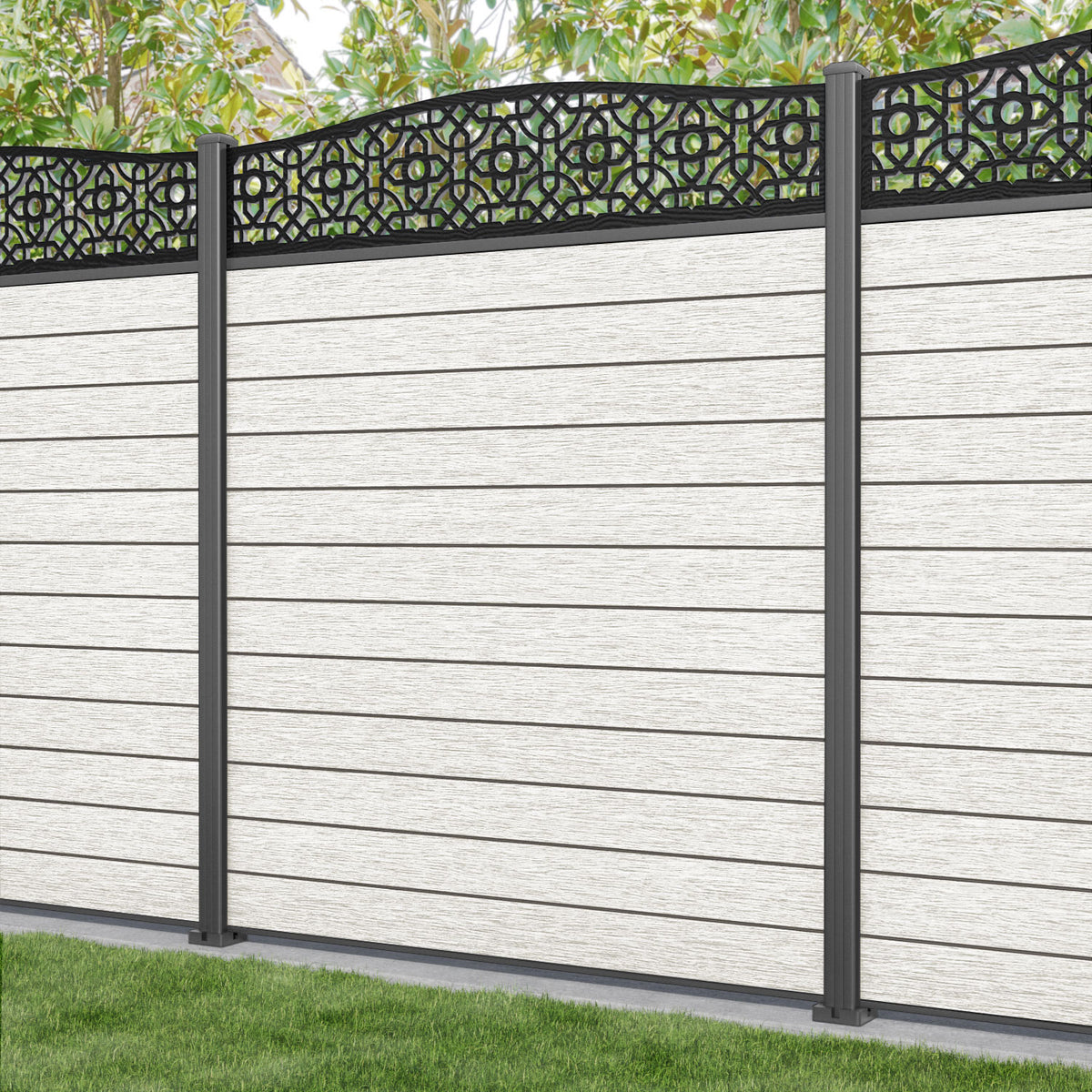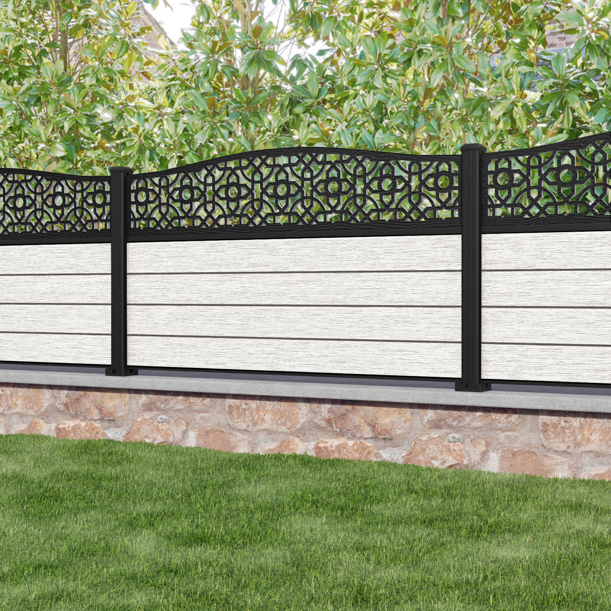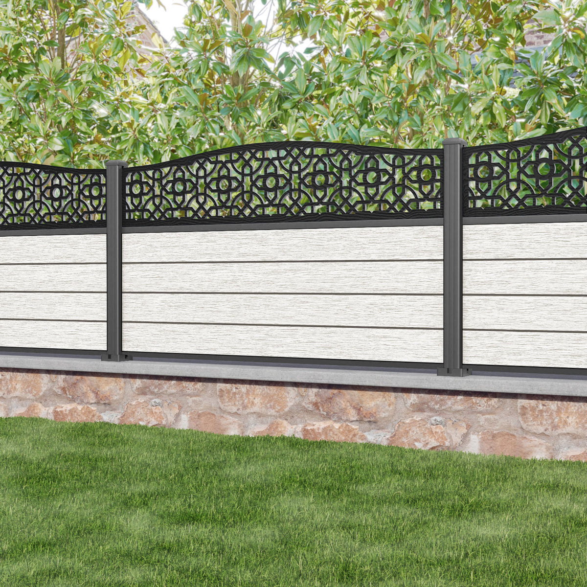 Fusion Nabila Curved Top Fence Panel Light Stone - with our aluminium posts