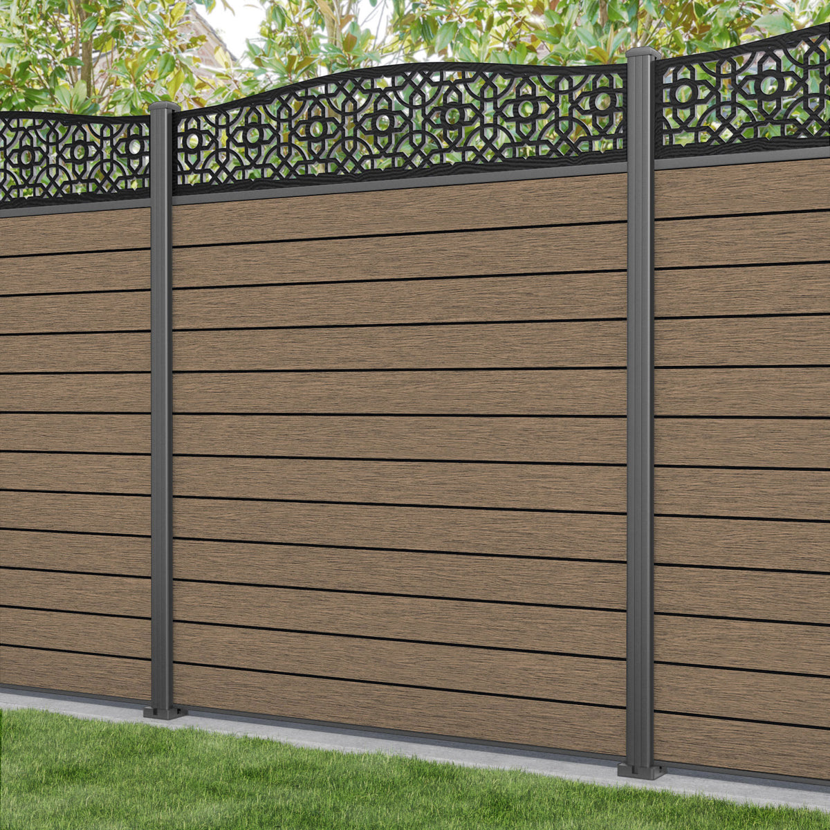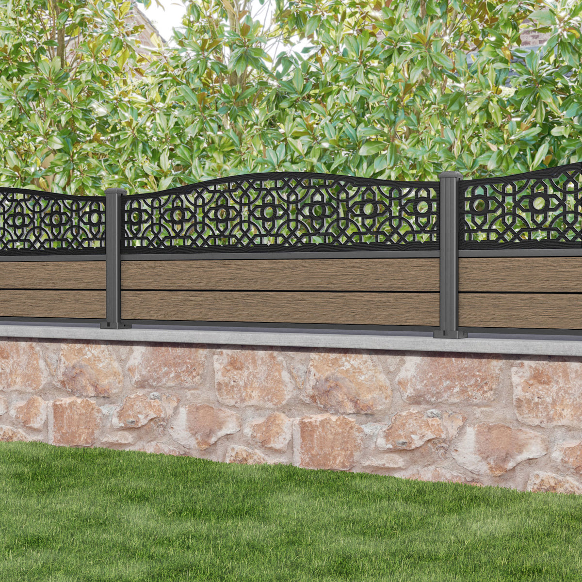 Fusion Nabila Curved Top Fence Panel Teak - with our aluminium posts