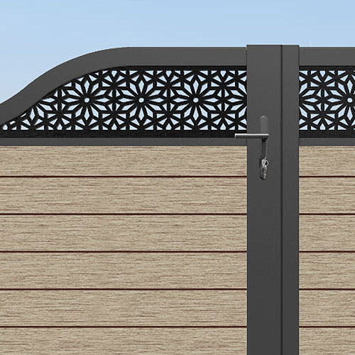 Fusion Narwa Curved Top Driveway Gate Light Oak - Top Screen