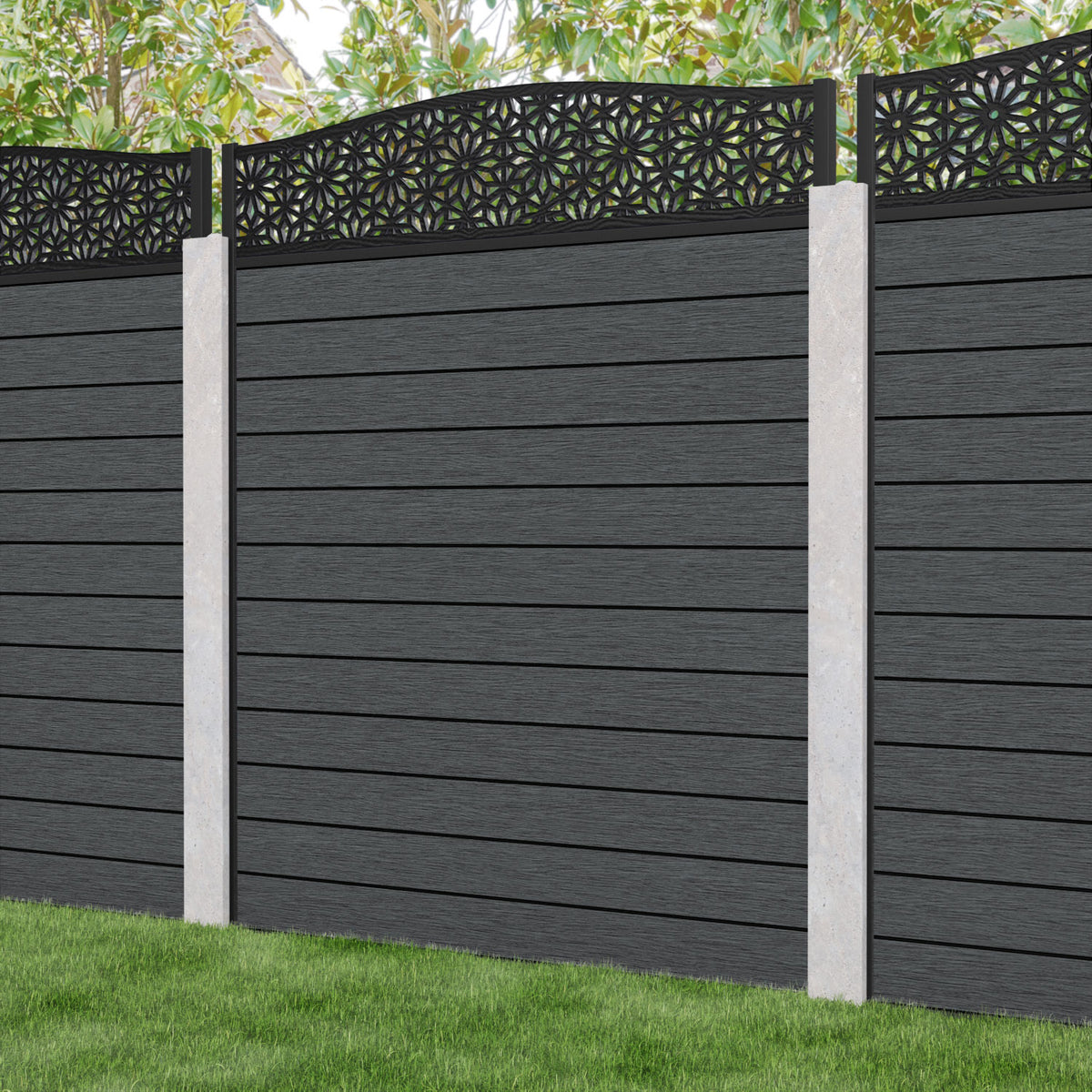 Fusion Narwa Curved Top Fence Panel Dark Grey - for existing concrete posts