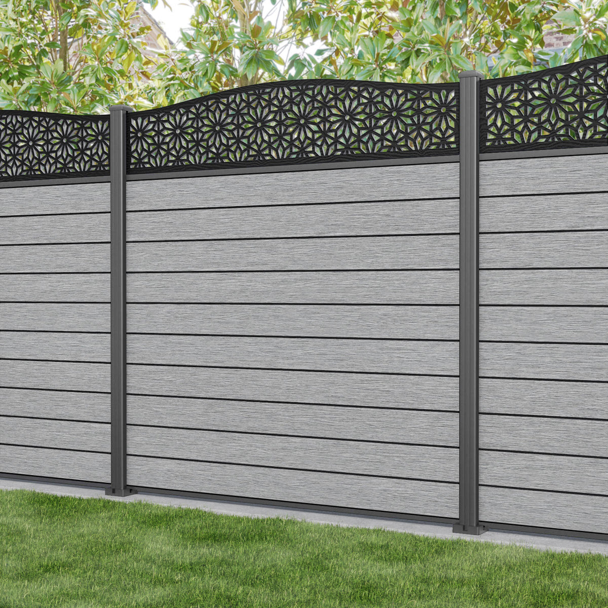 Fusion Narwa Curved Top Fence Panel Light Grey - with our aluminium posts