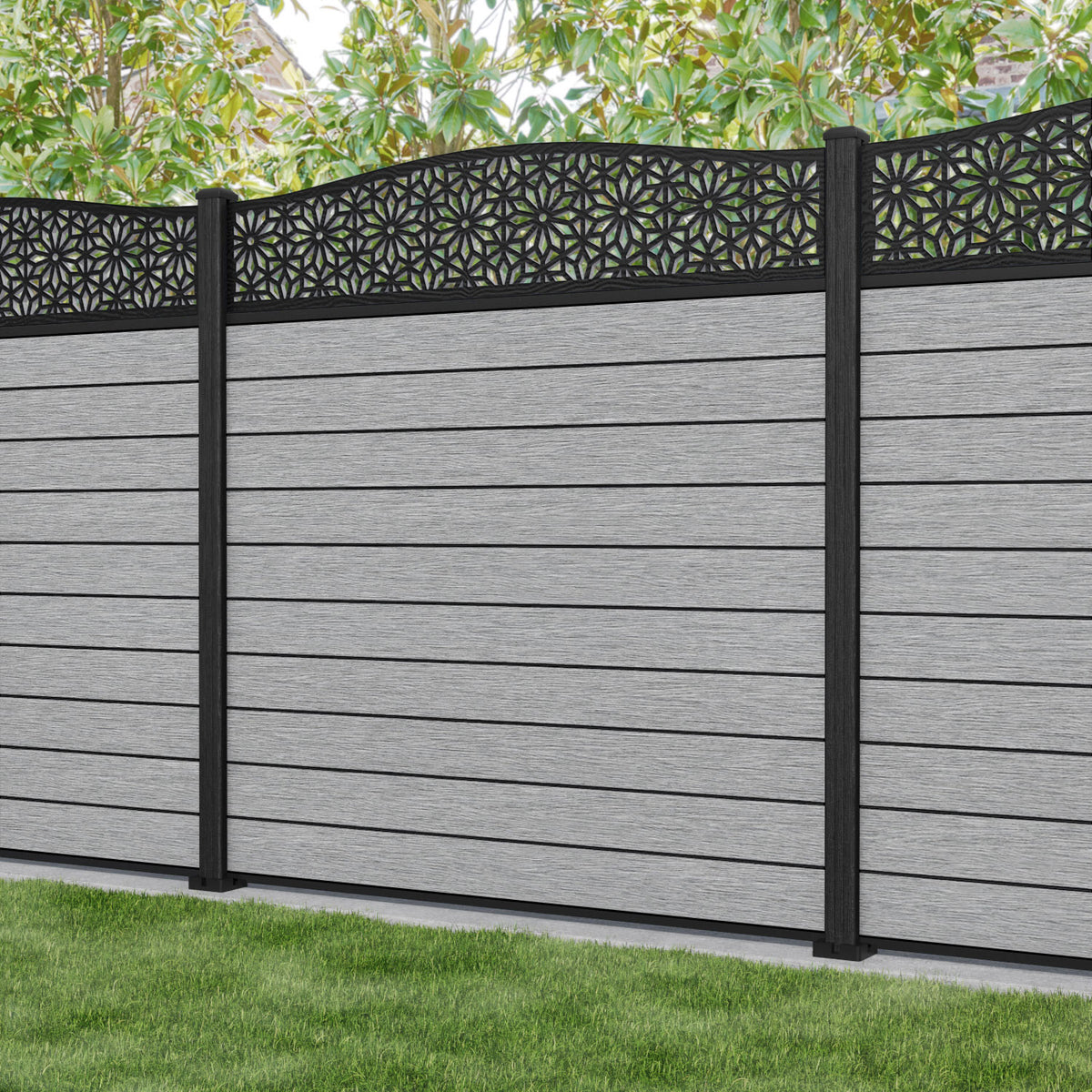 Fusion Narwa Curved Top Fence Panel Light Grey - with our composite posts