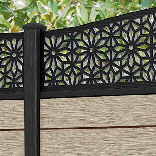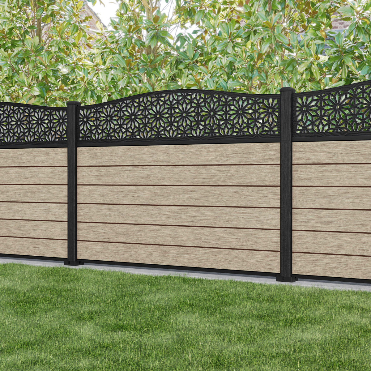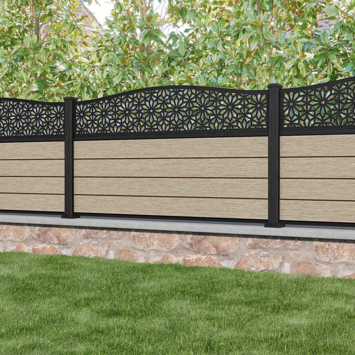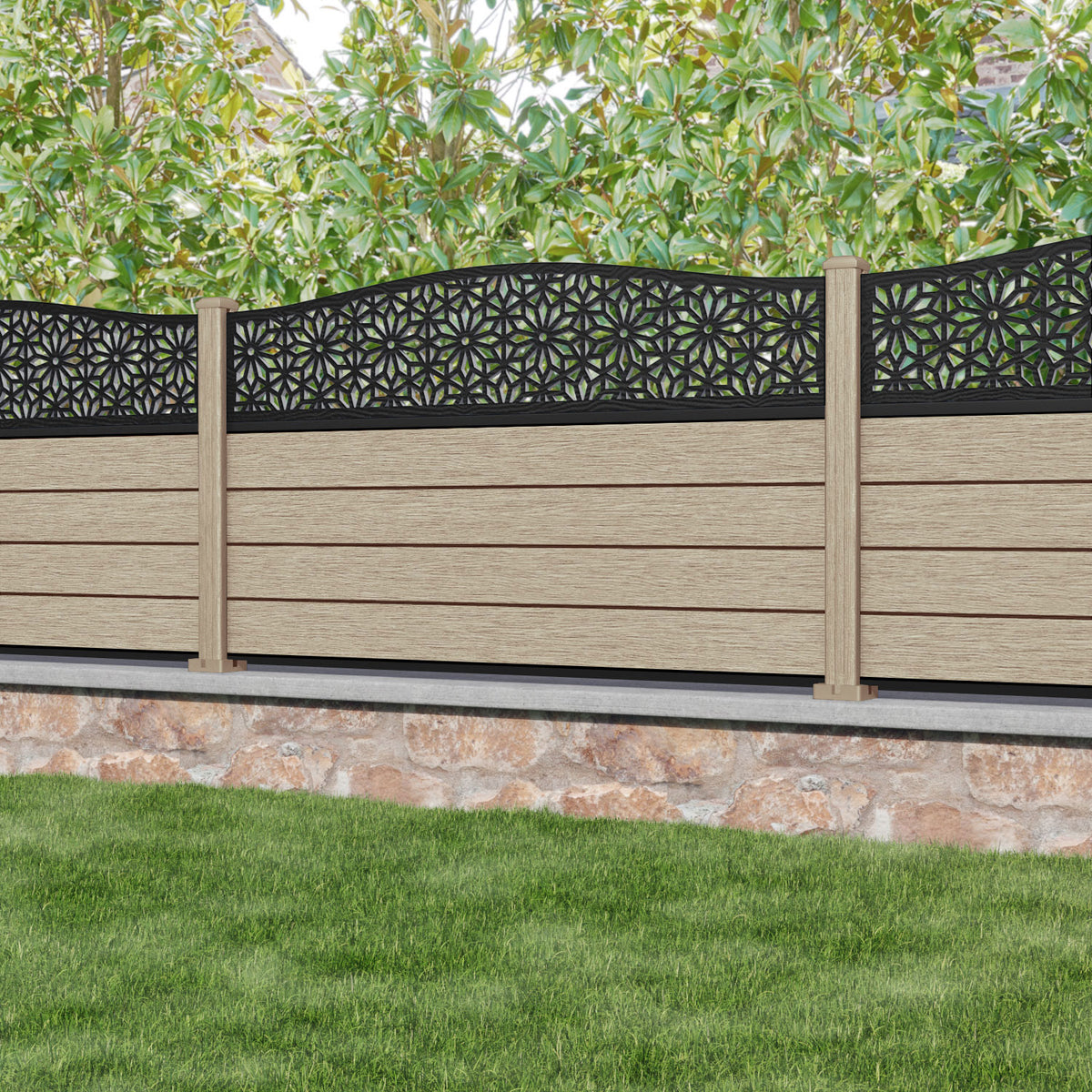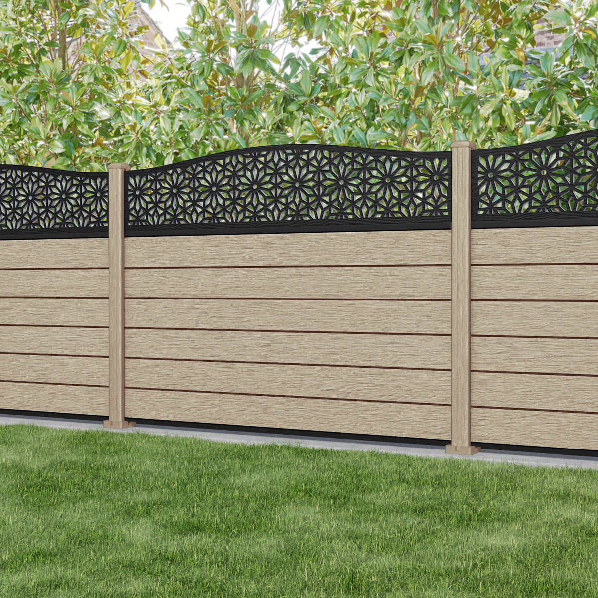 Fusion Narwa Curved Top Fence Panel Light Oak - with our composite posts