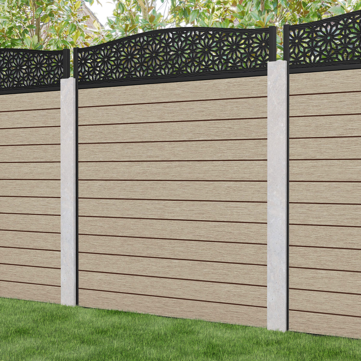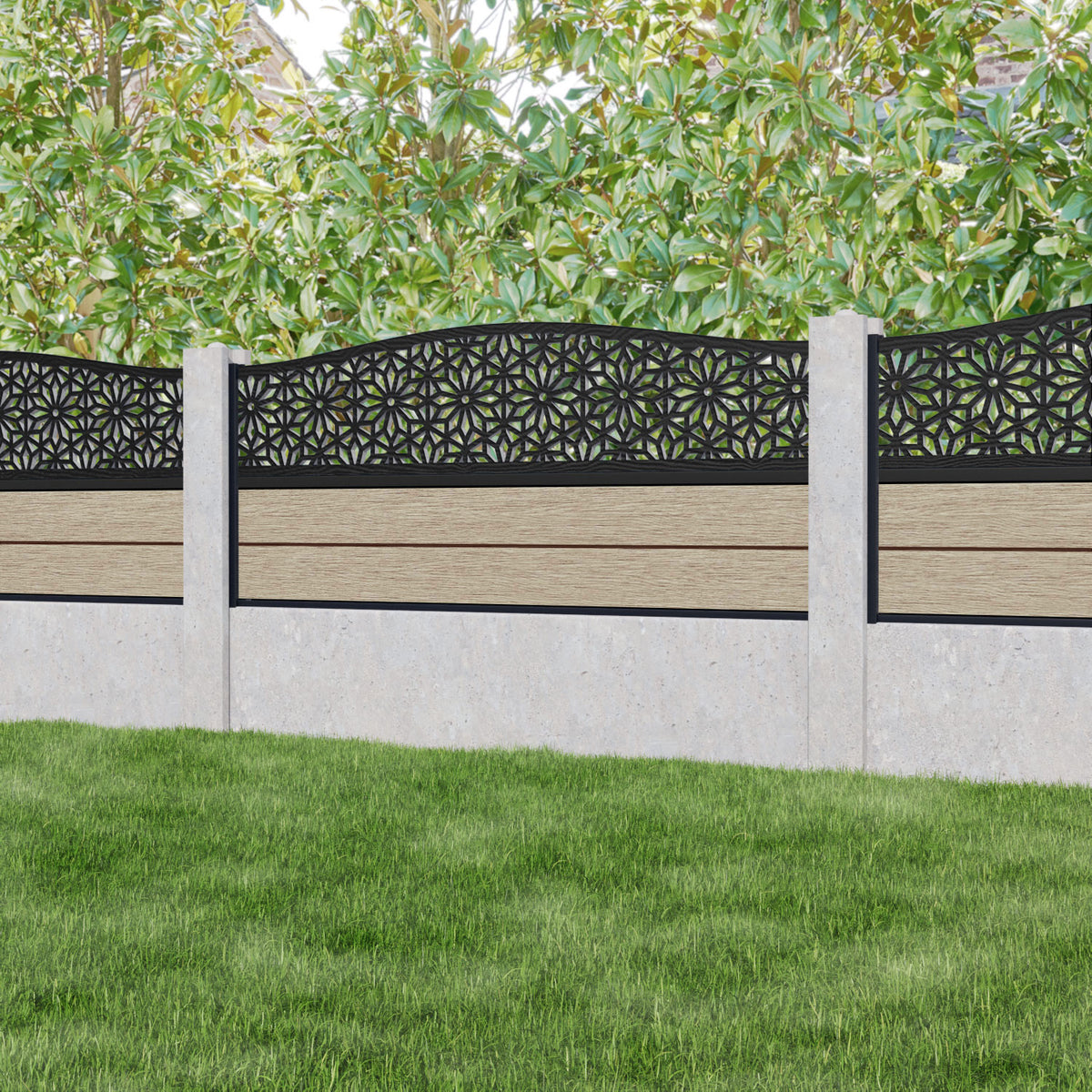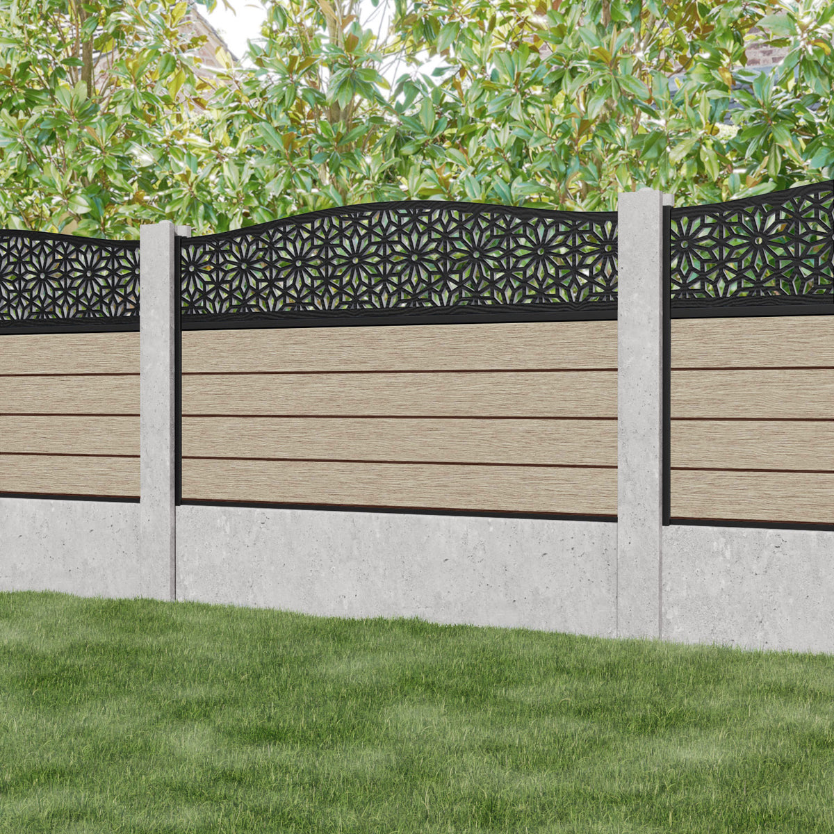 Fusion Narwa Curved Top Fence Panel Light Oak - for existing concrete posts