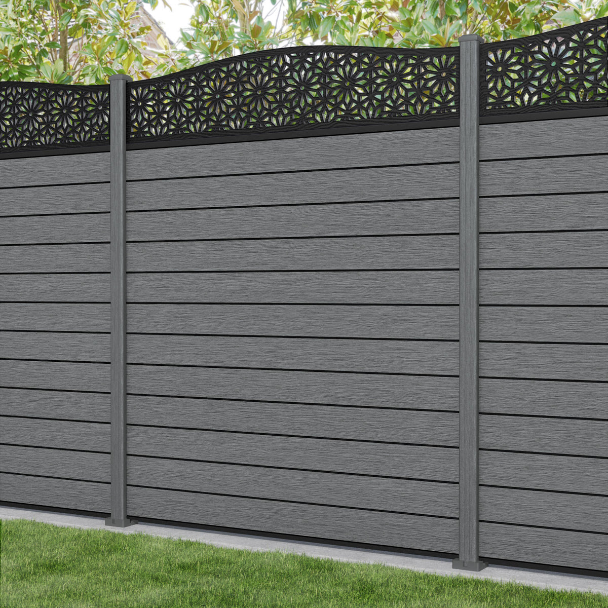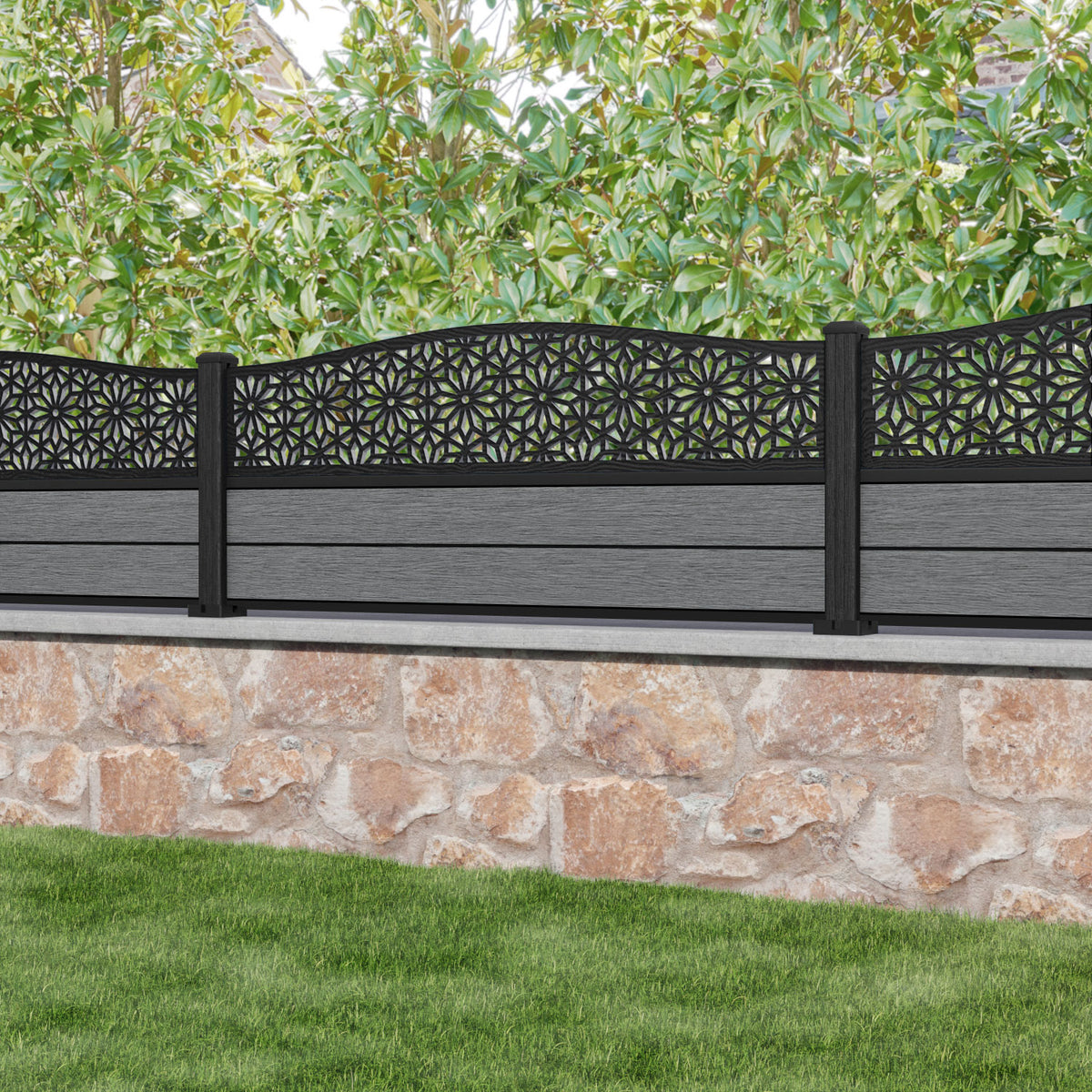 Fusion Narwa Curved Top Fence Panel Mid Grey - with our composite posts