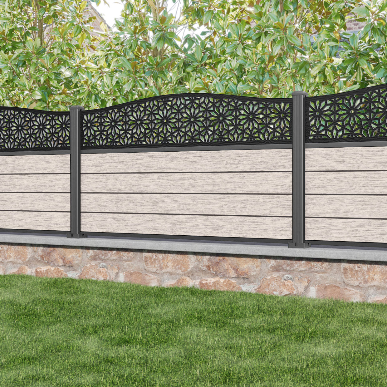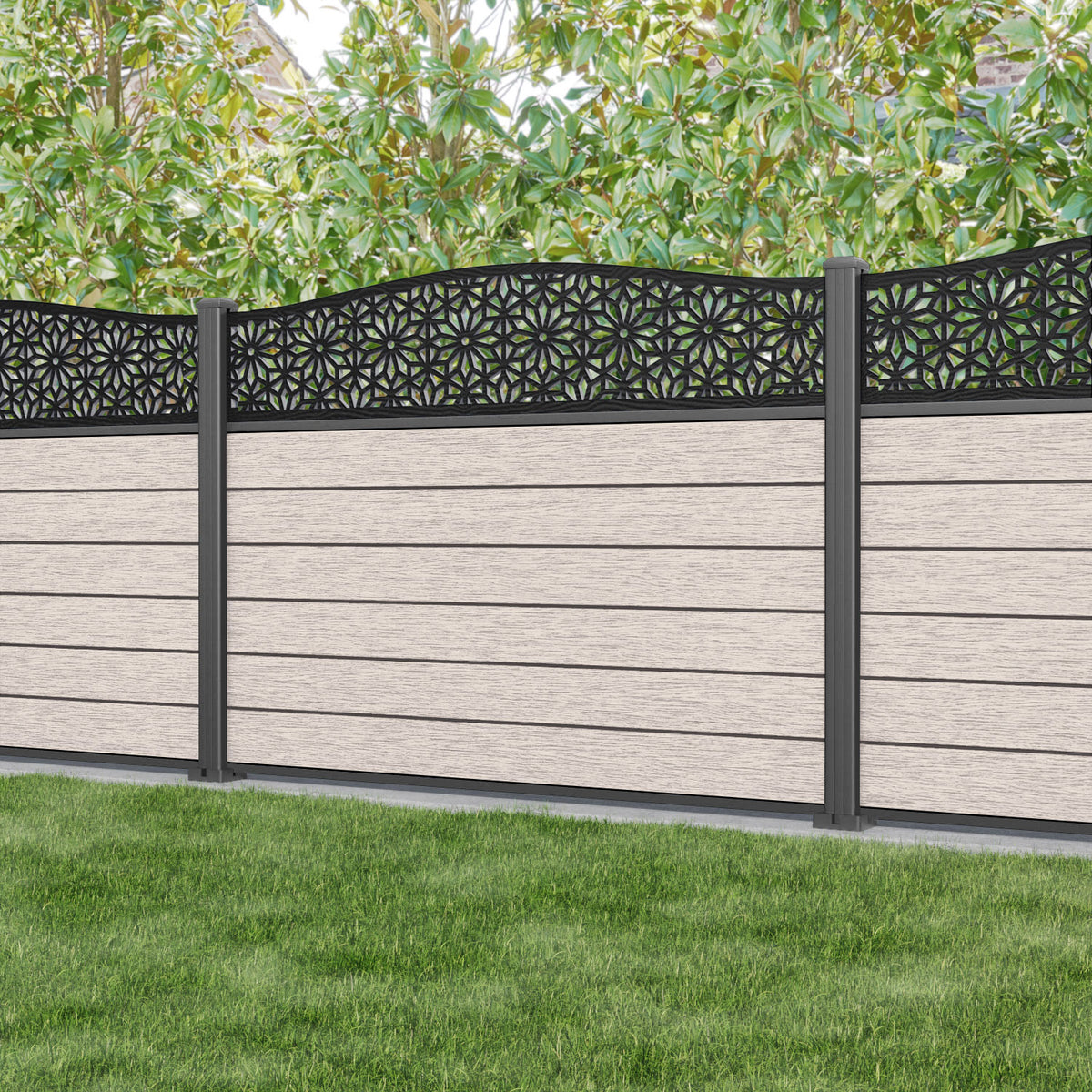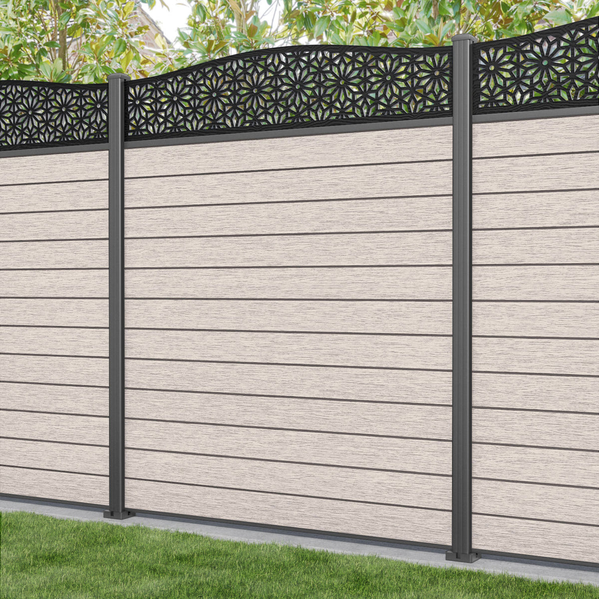 Fusion Narwa Curved Top Fence Panel Mid Stone - with our aluminium posts