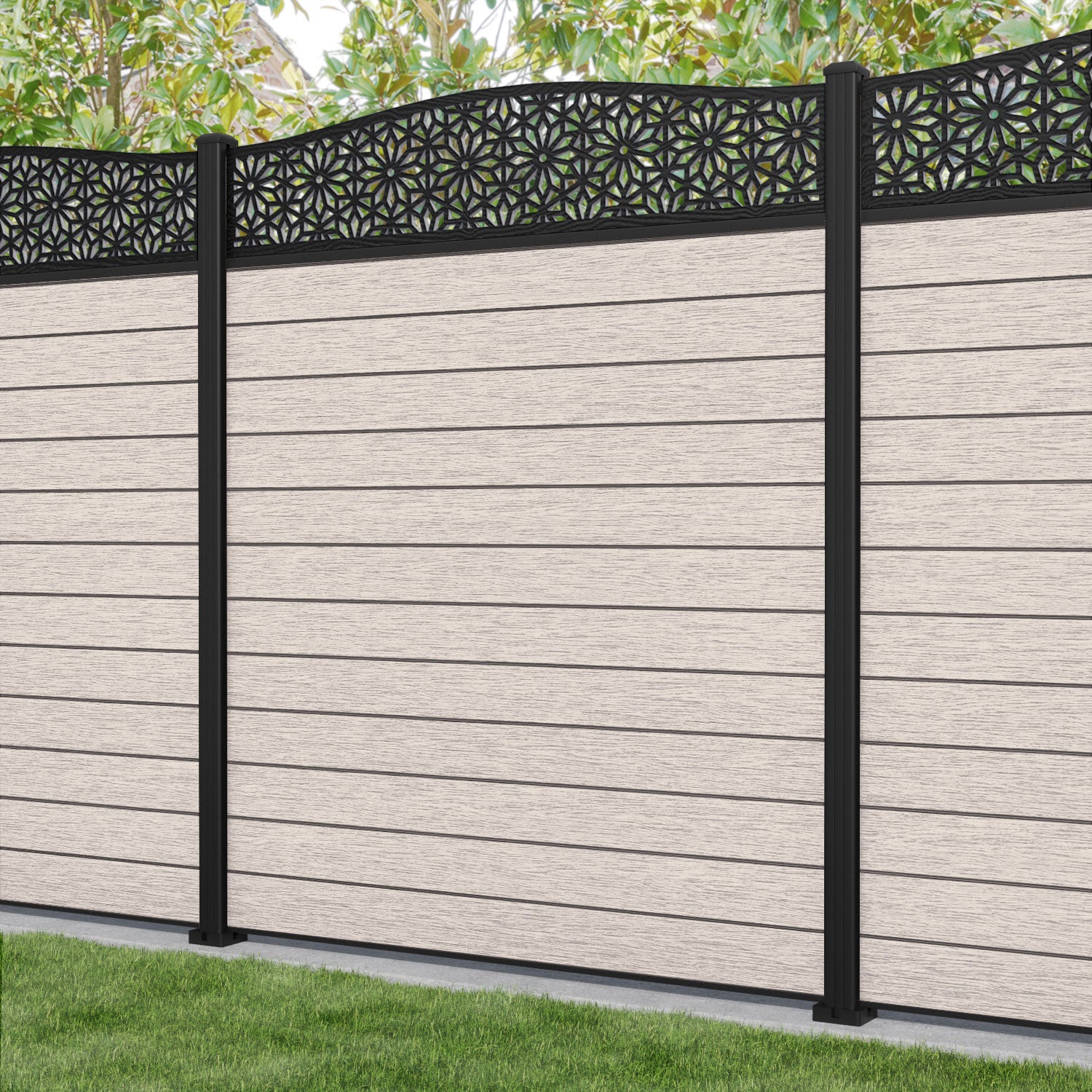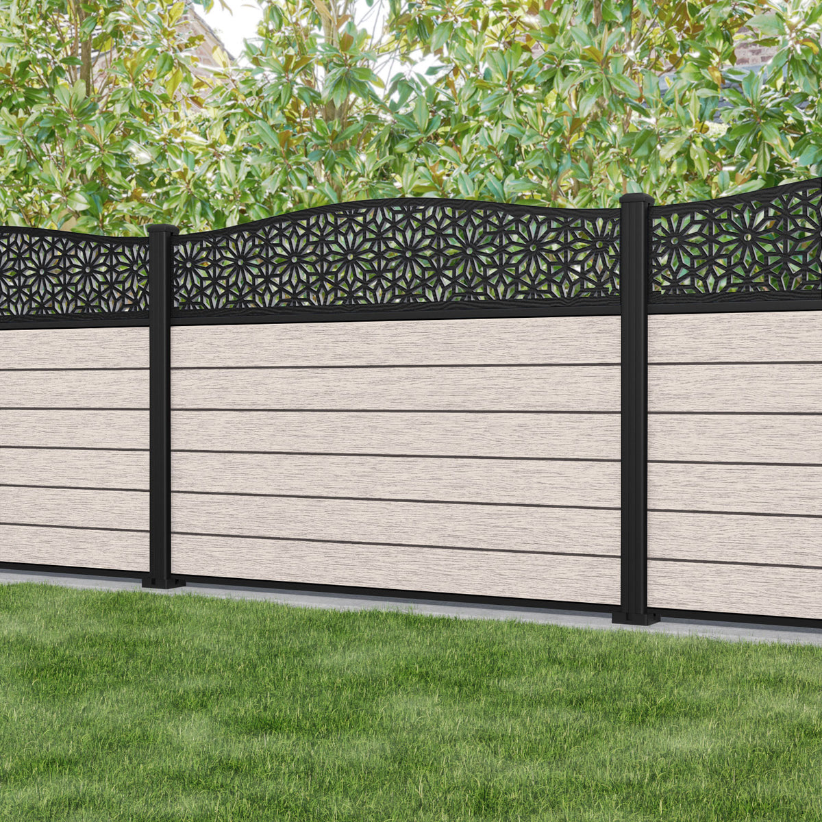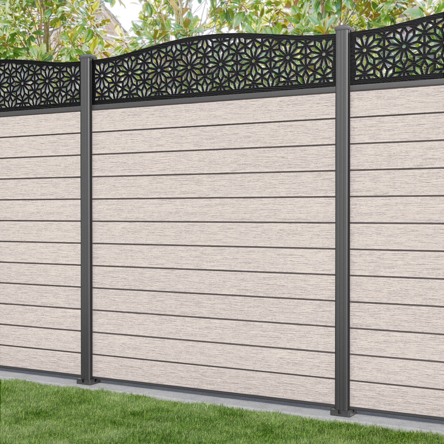 Fusion Narwa Curved Top Fence Panel Mid Stone - with our aluminium posts