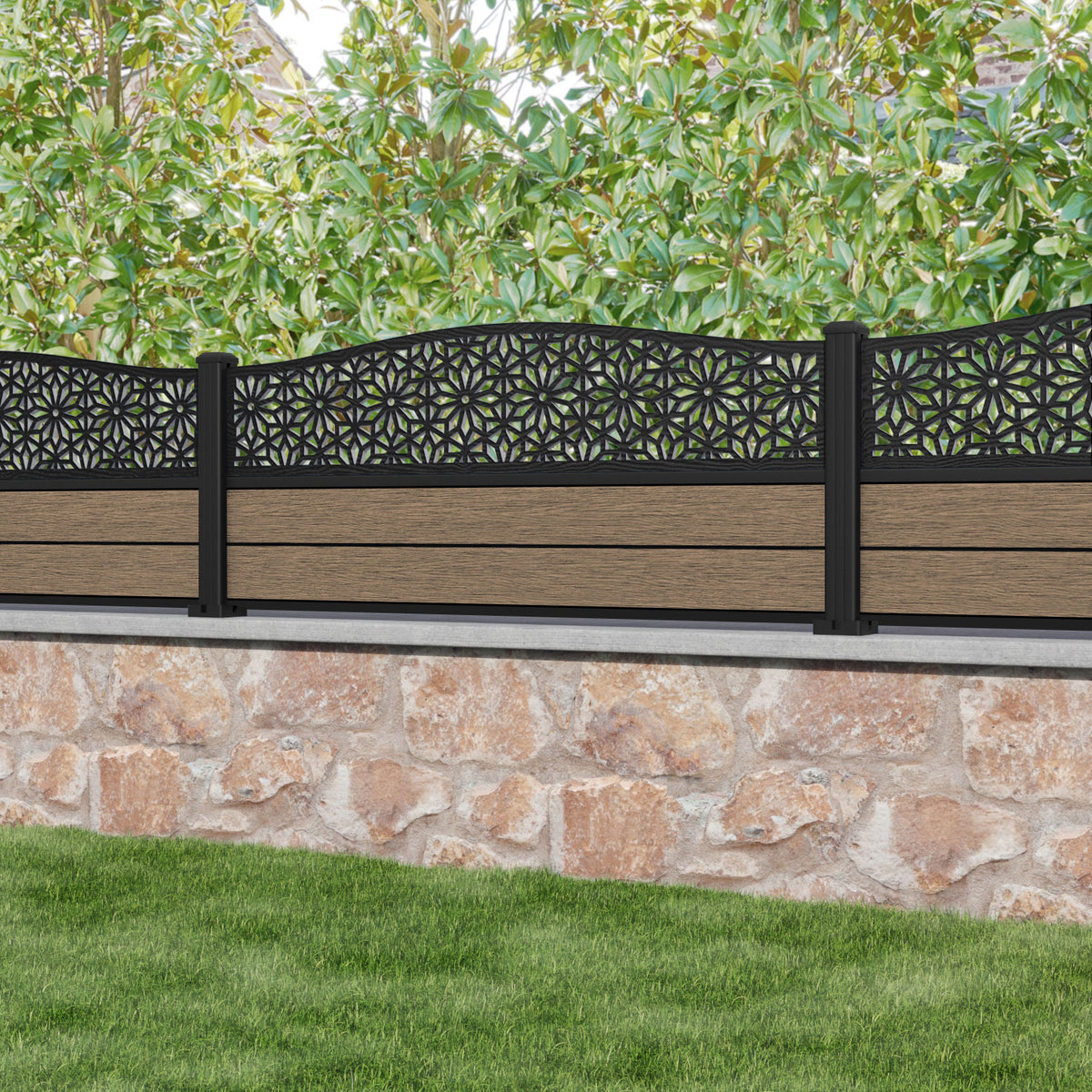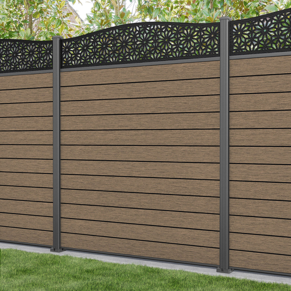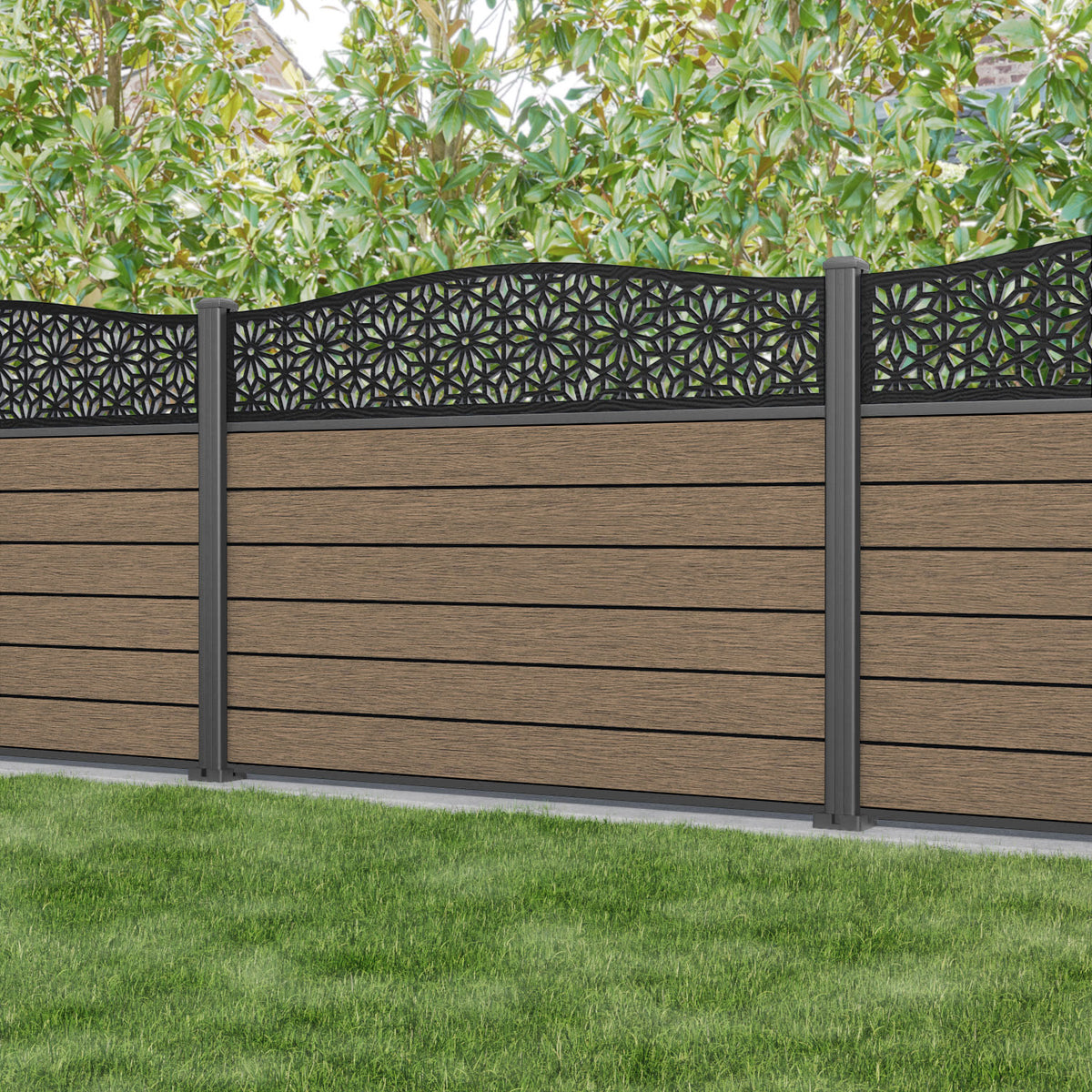 Fusion Narwa Curved Top Fence Panel Teak - with our aluminium posts
