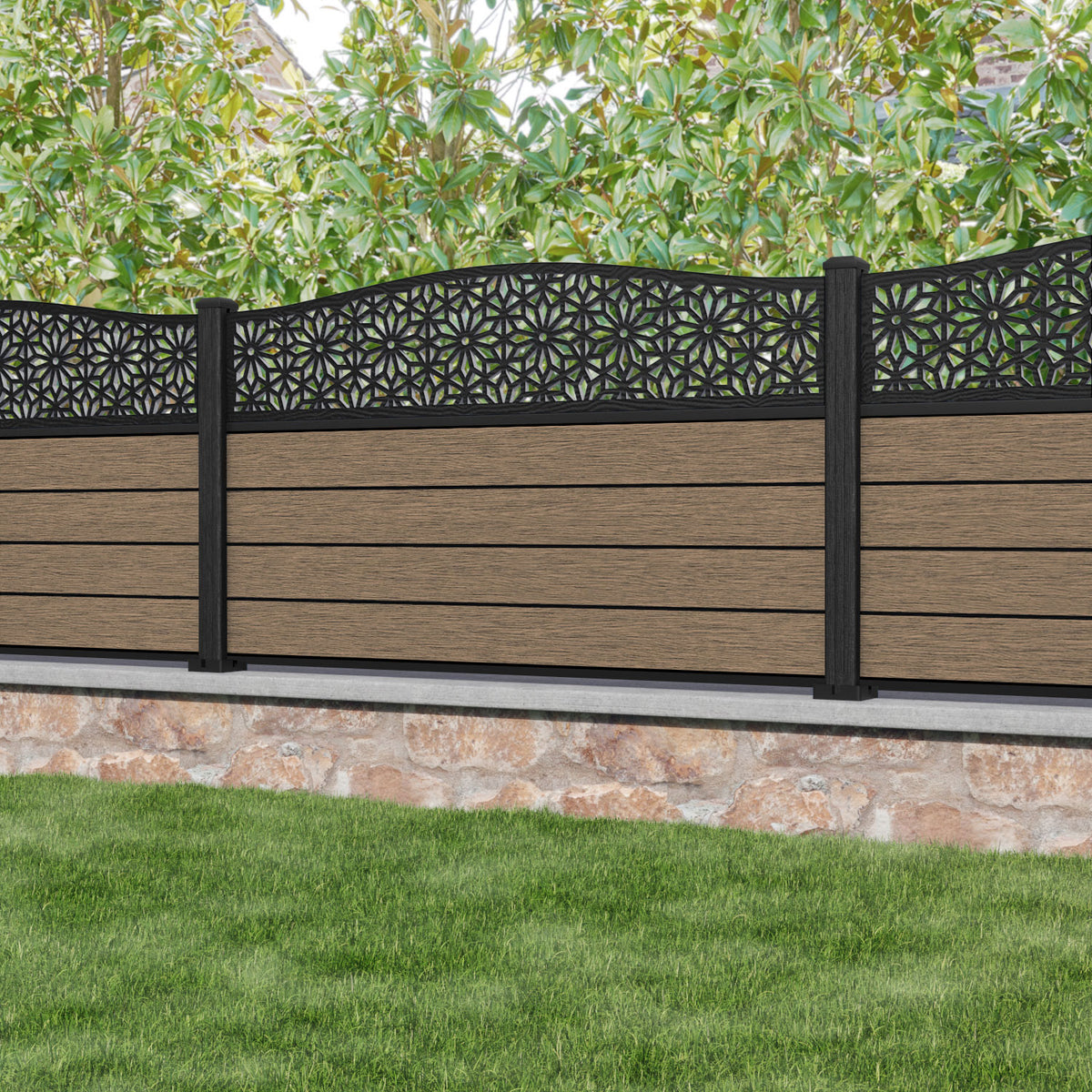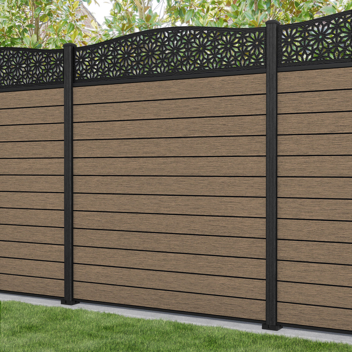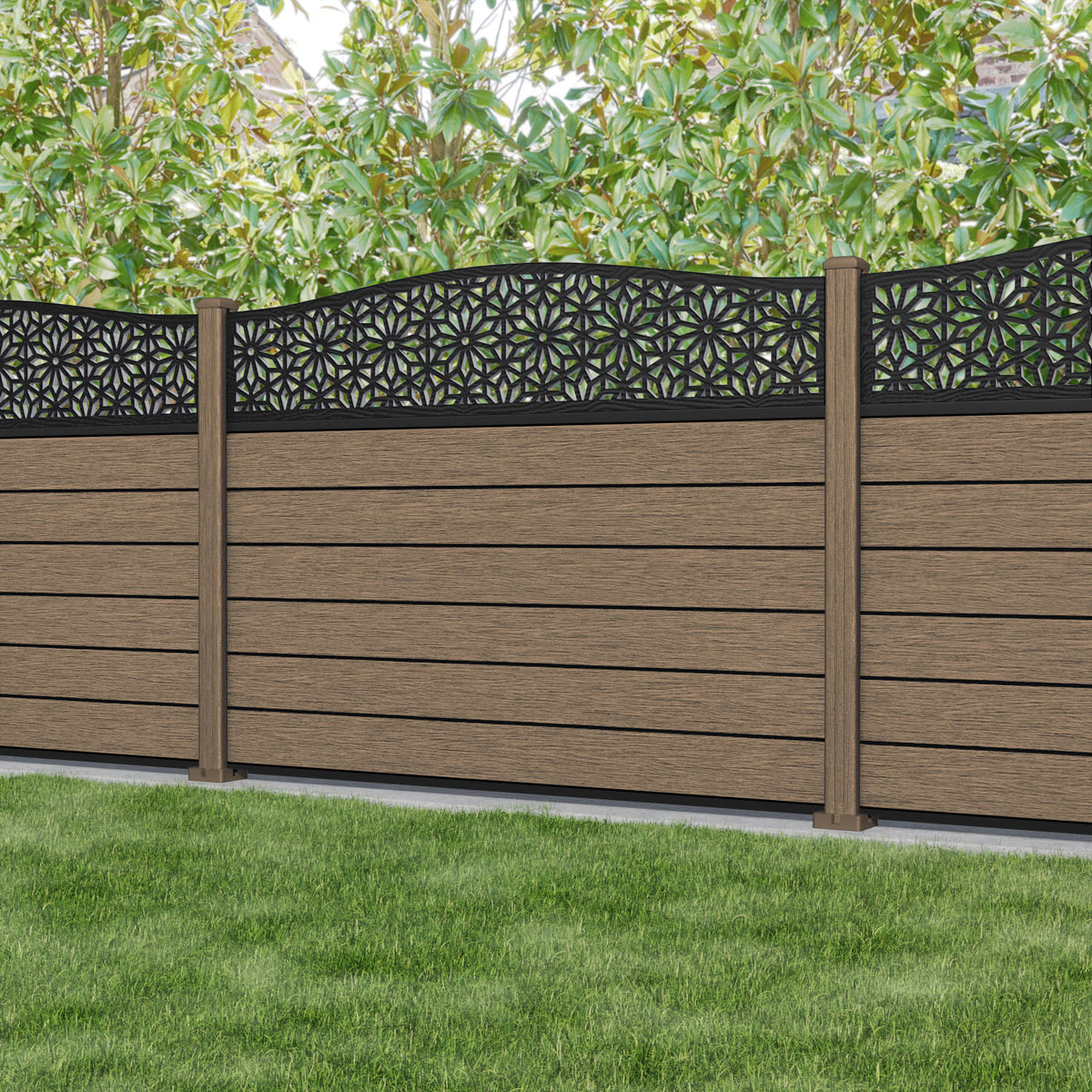 Fusion Narwa Curved Top Fence Panel Teak - with our composite posts
