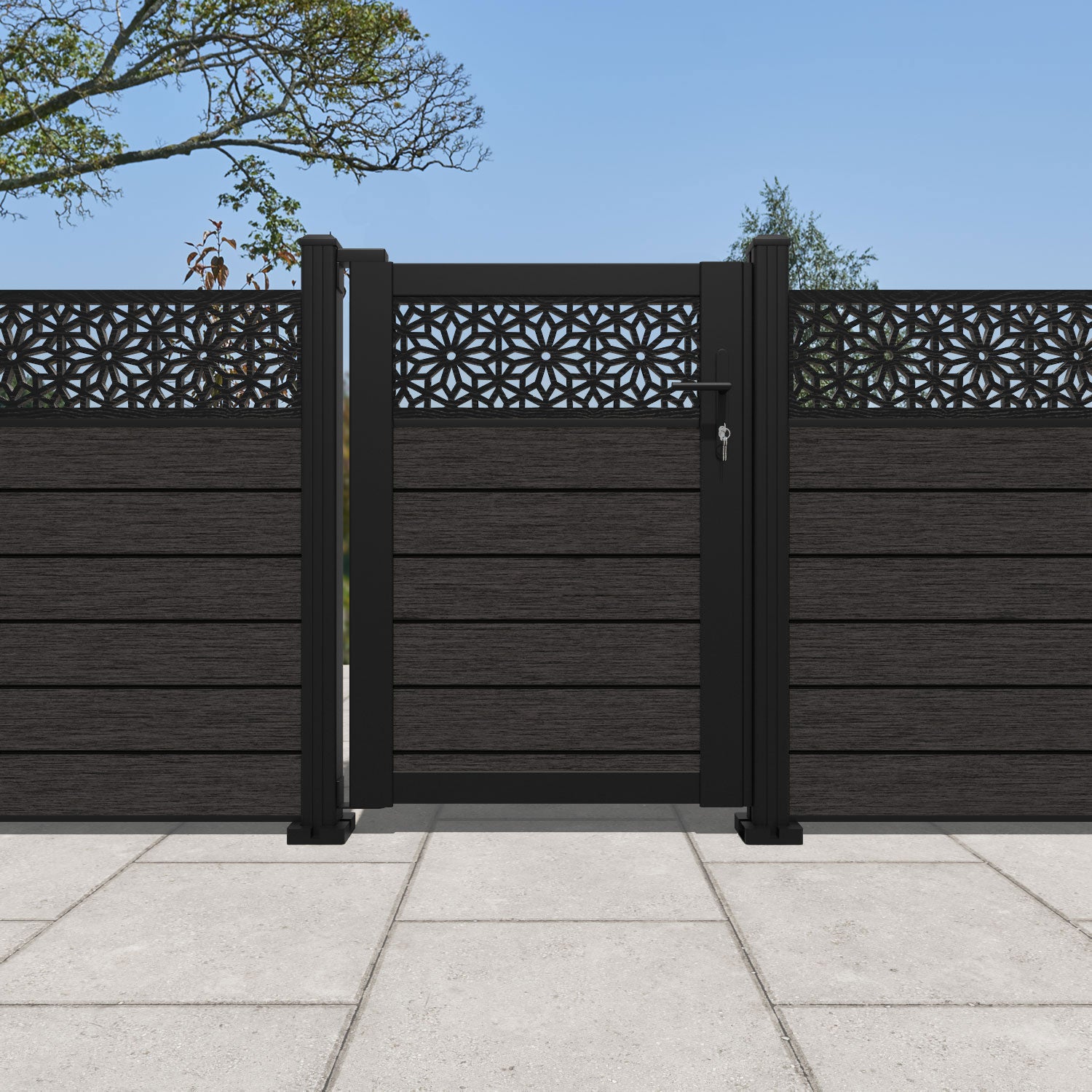 Pair your gate with our eco-friendly composite or aluminium slats for a seamless match to our fencing collections, ensuring a stylish and cohesive look.