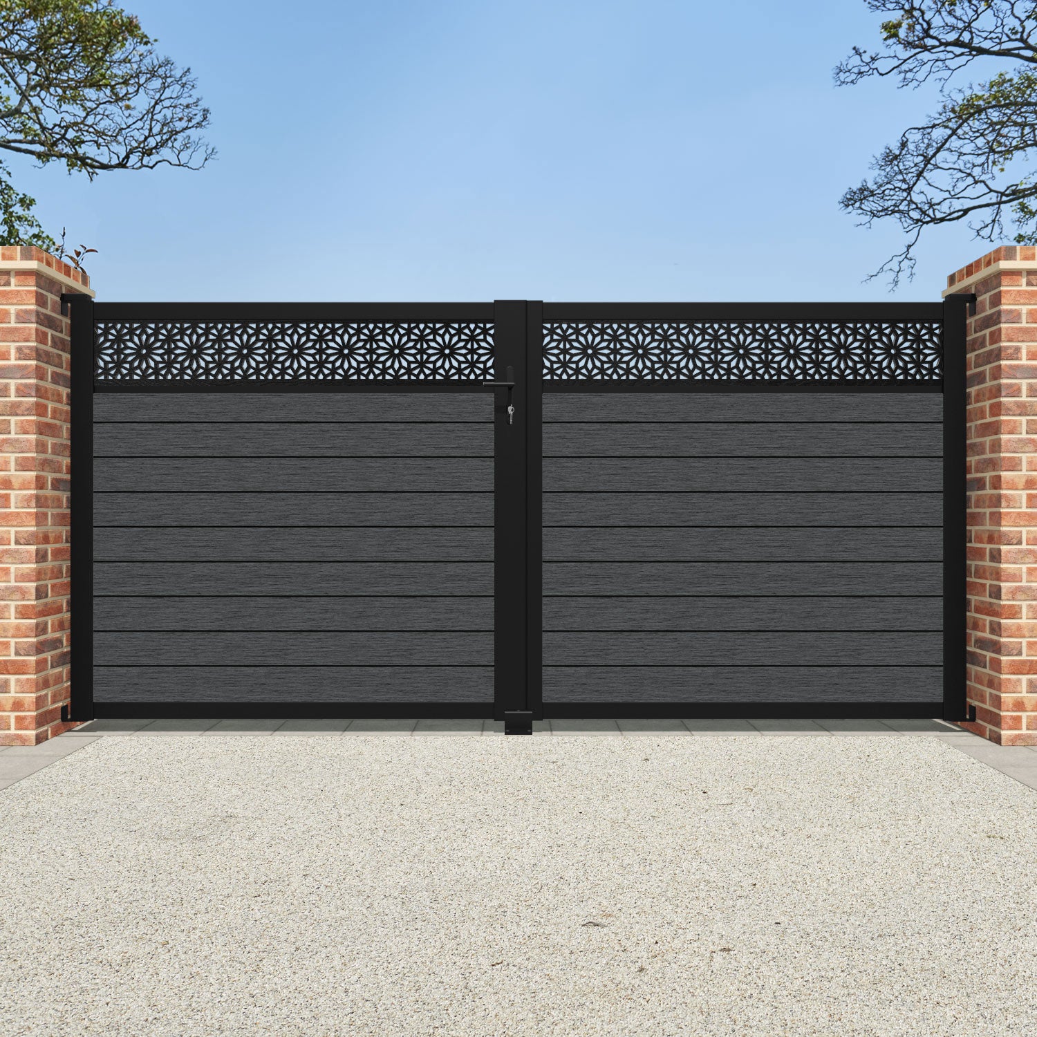 Pair your gate with our eco-friendly composite or aluminium slats for a seamless match with our fencing collections, ensuring a stylish and cohesive look.