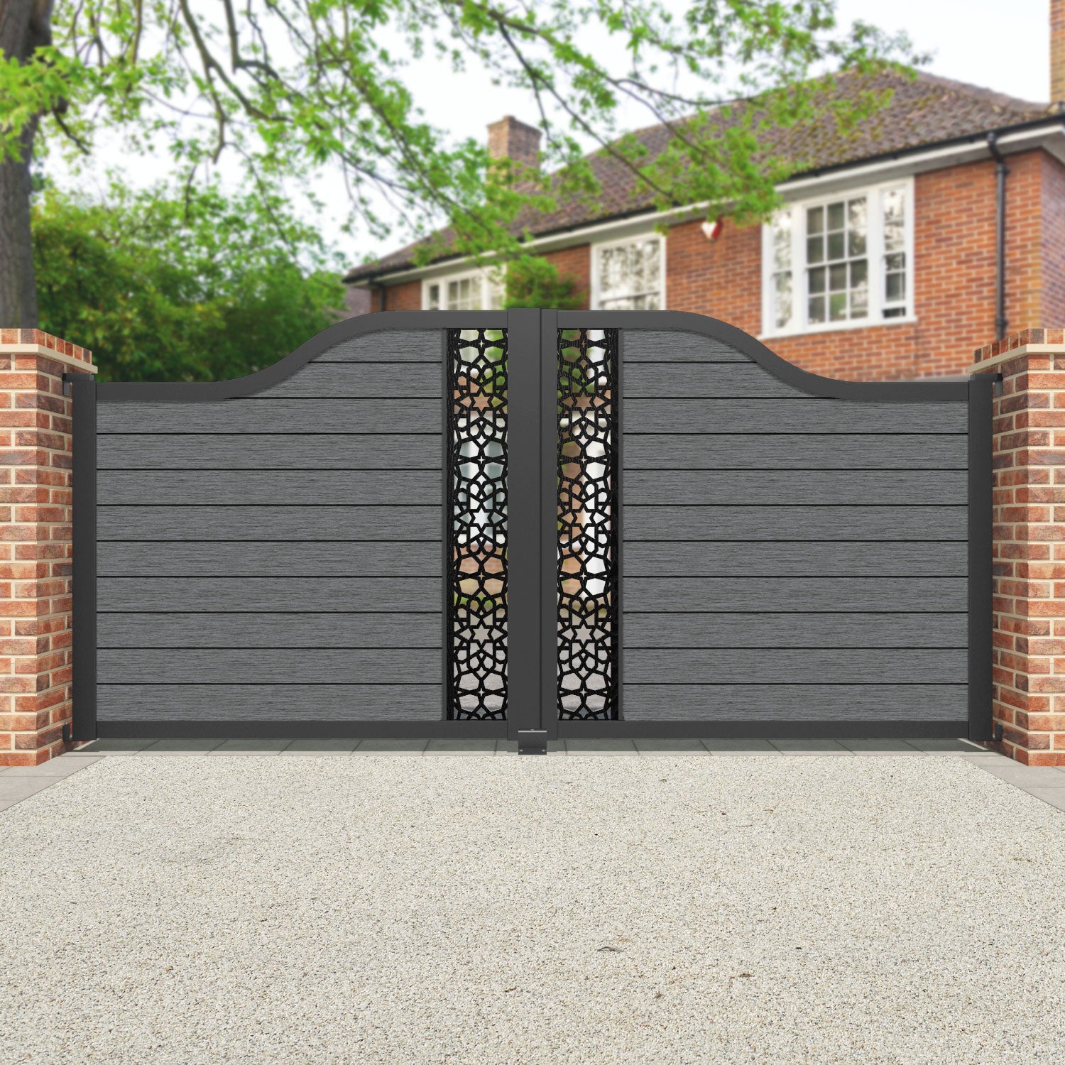 Fusion Nazira Curved Top Driveway Gate Mid Grey - Middle Screen