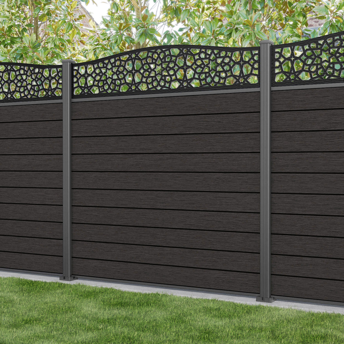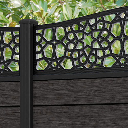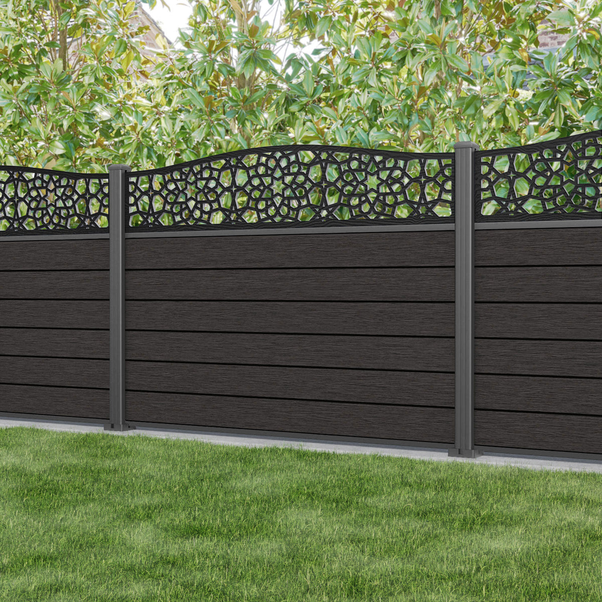 Fusion Nazira Curved Top Fence Panel Dark Oak - with our aluminium posts