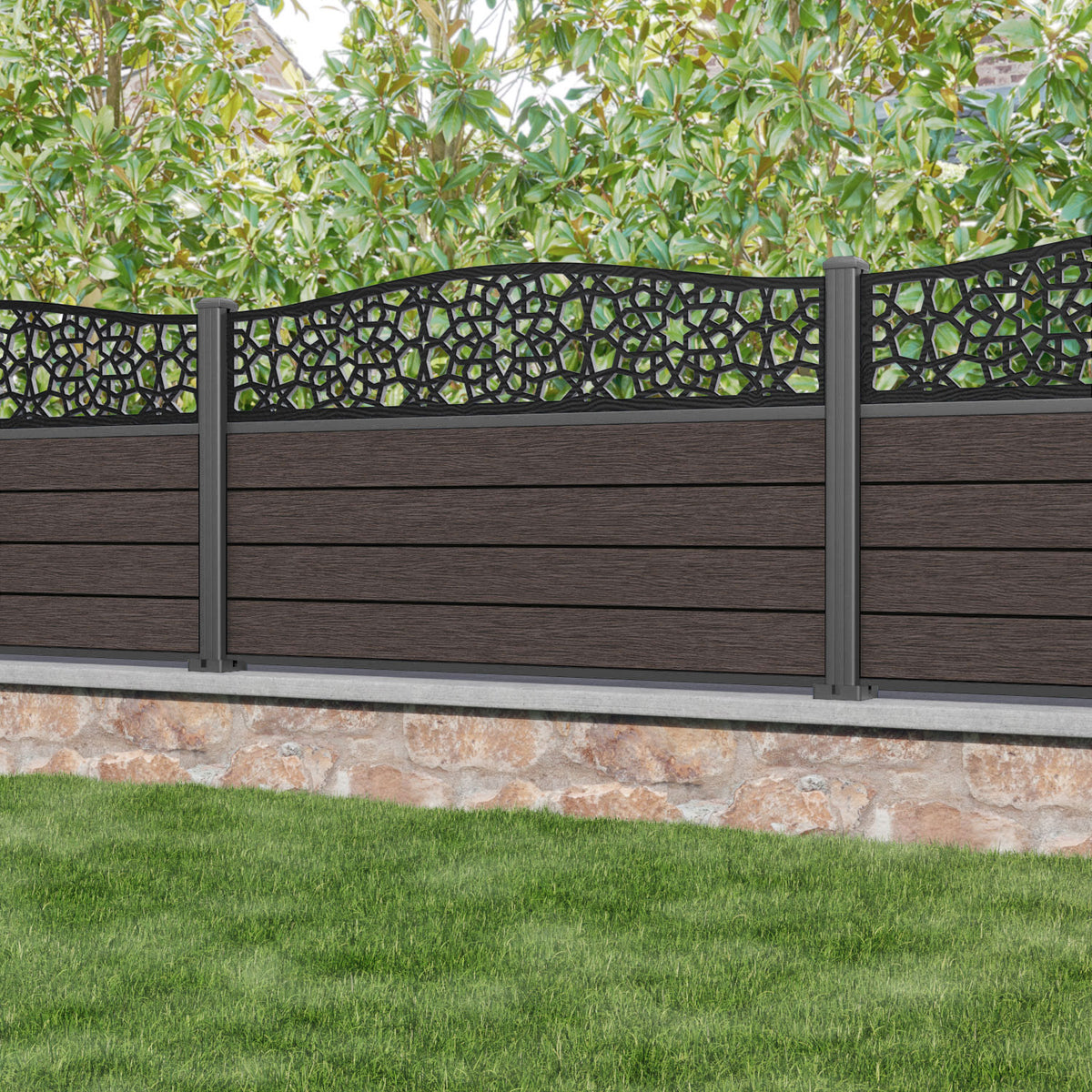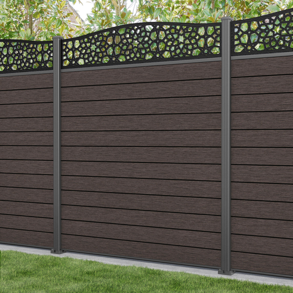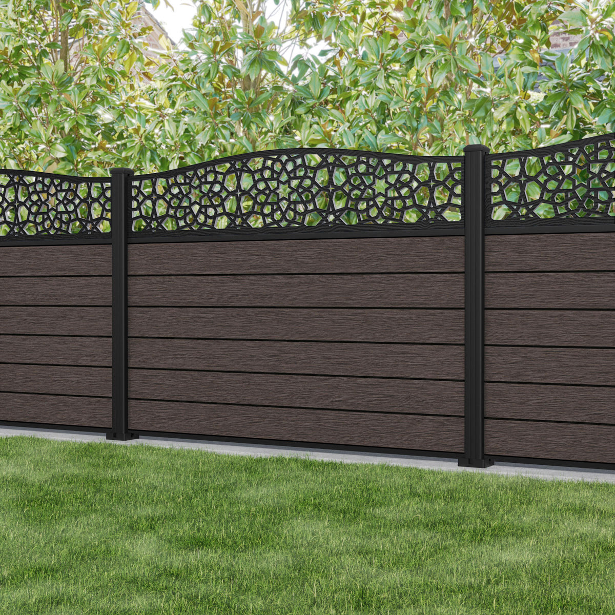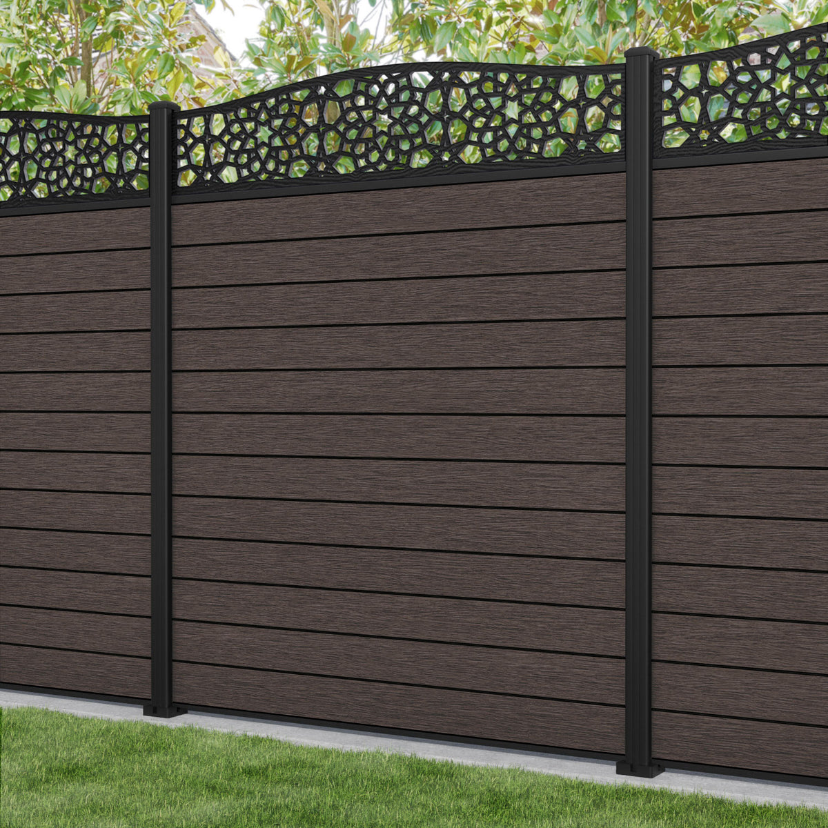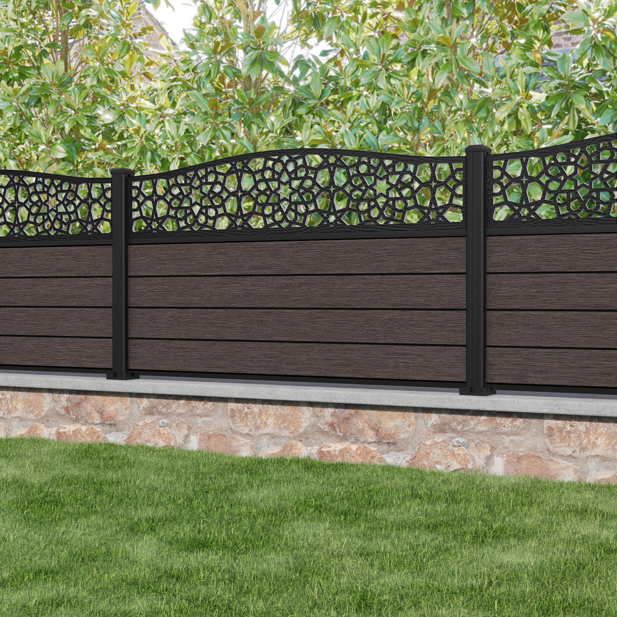 Fusion Nazira Curved Top Fence Panel Mid Brown - with our aluminium posts