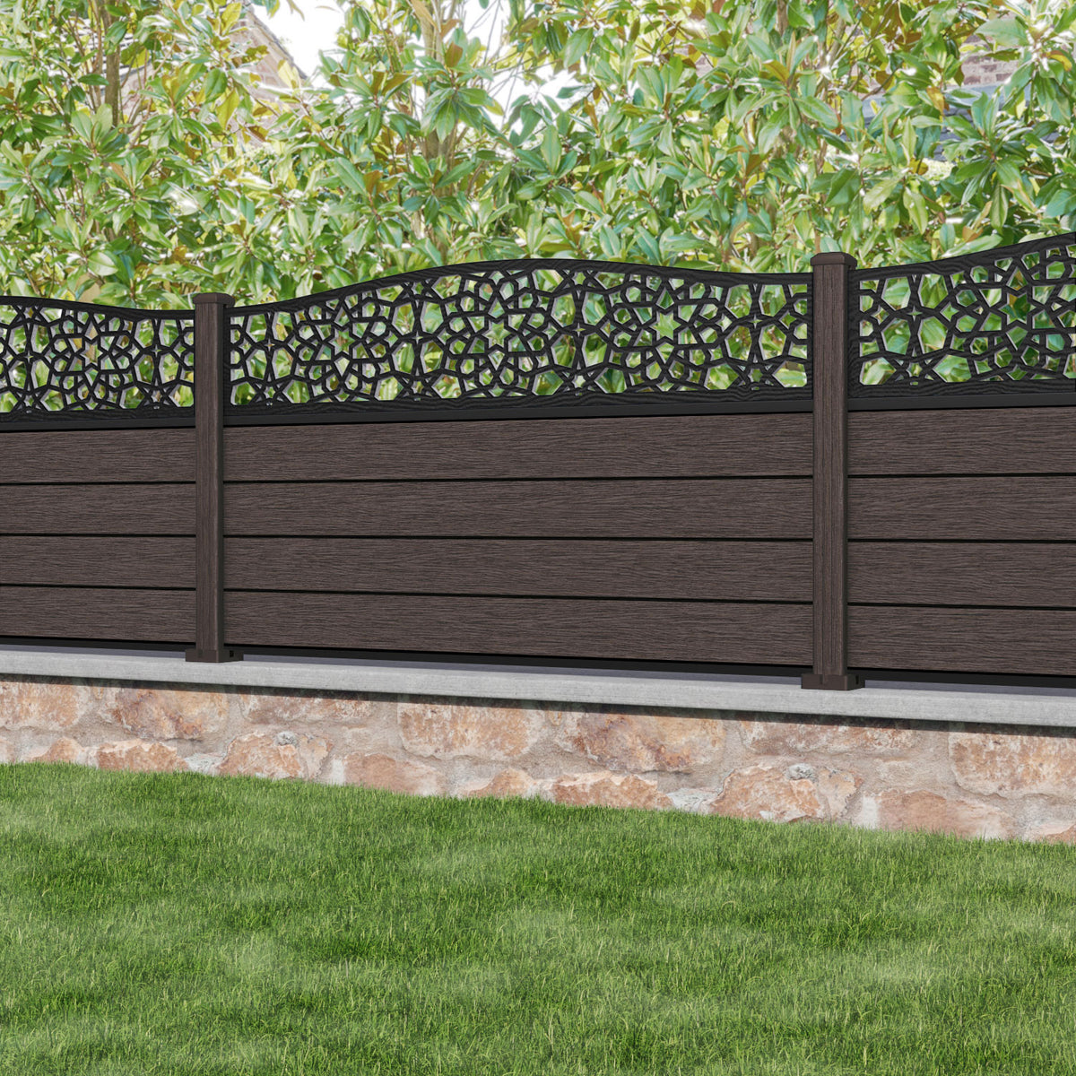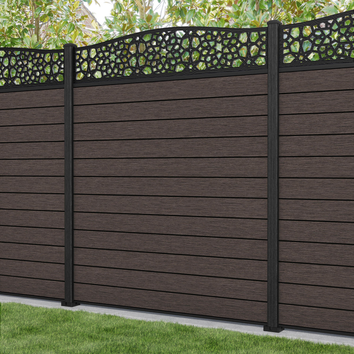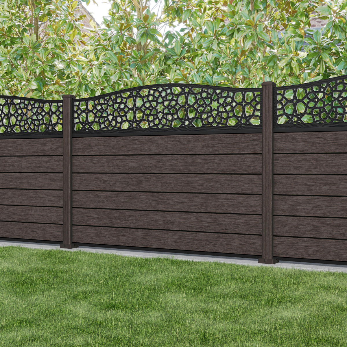 Fusion Nazira Curved Top Fence Panel Mid Brown - with our composite posts