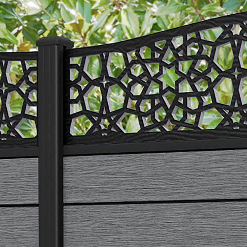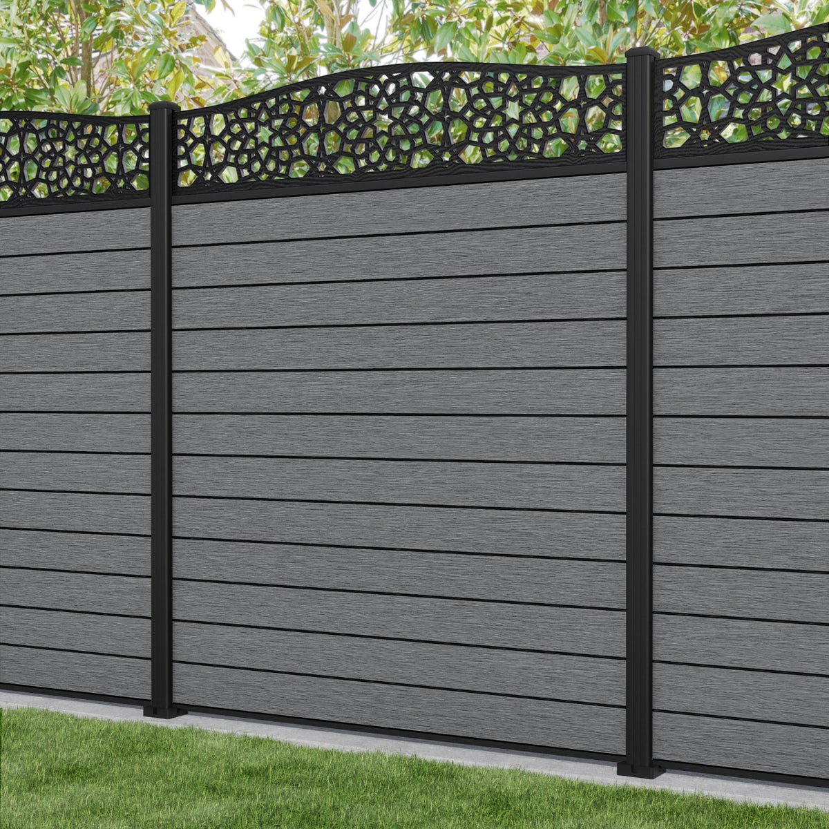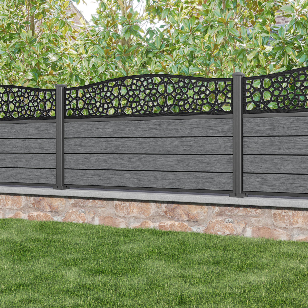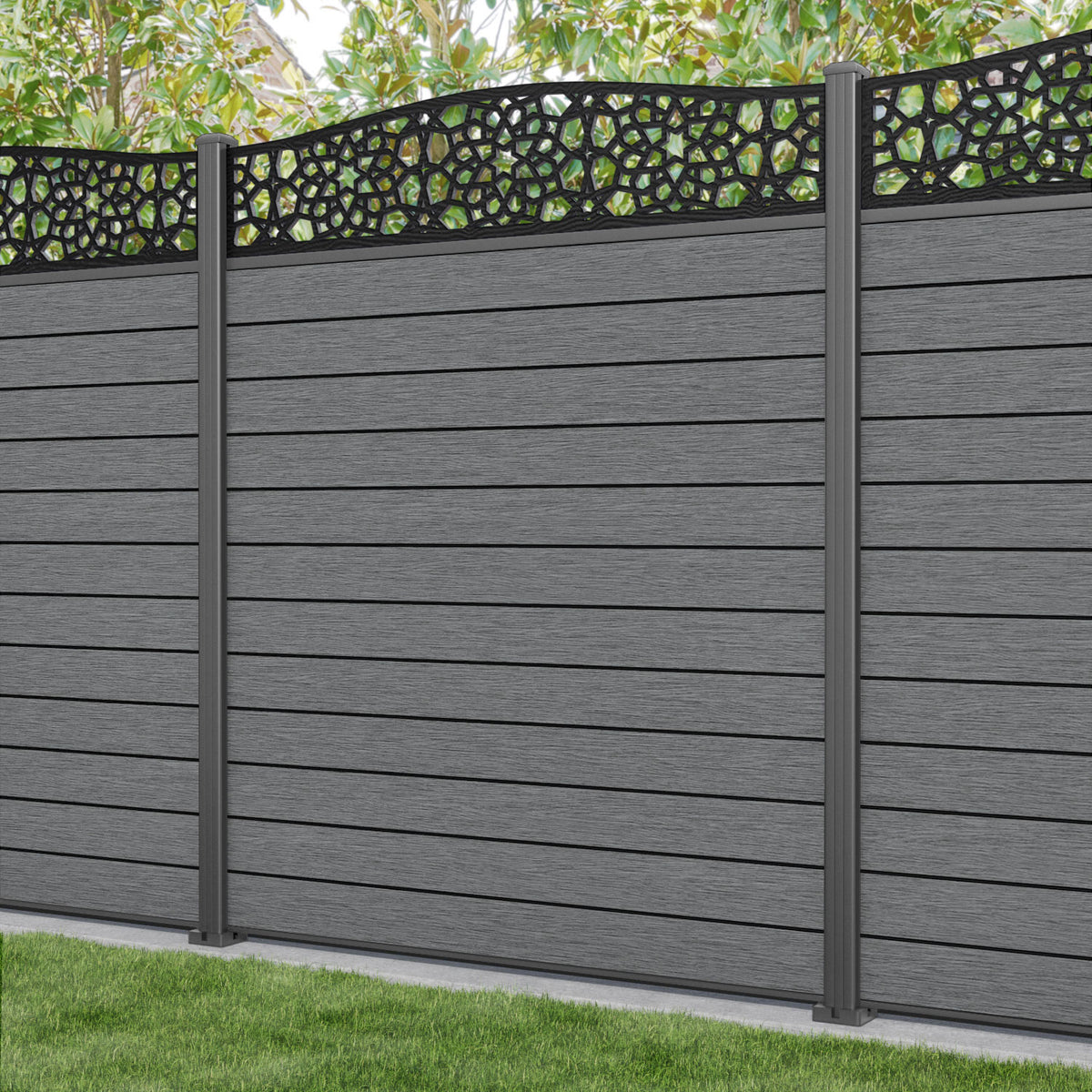 Fusion Nazira Curved Top Fence Panel Mid Grey - with our aluminium posts