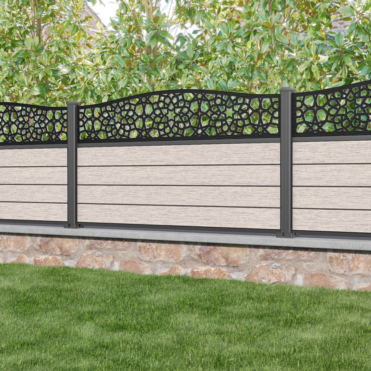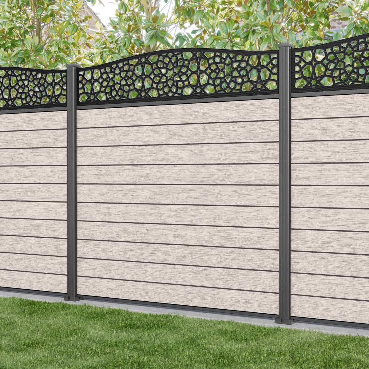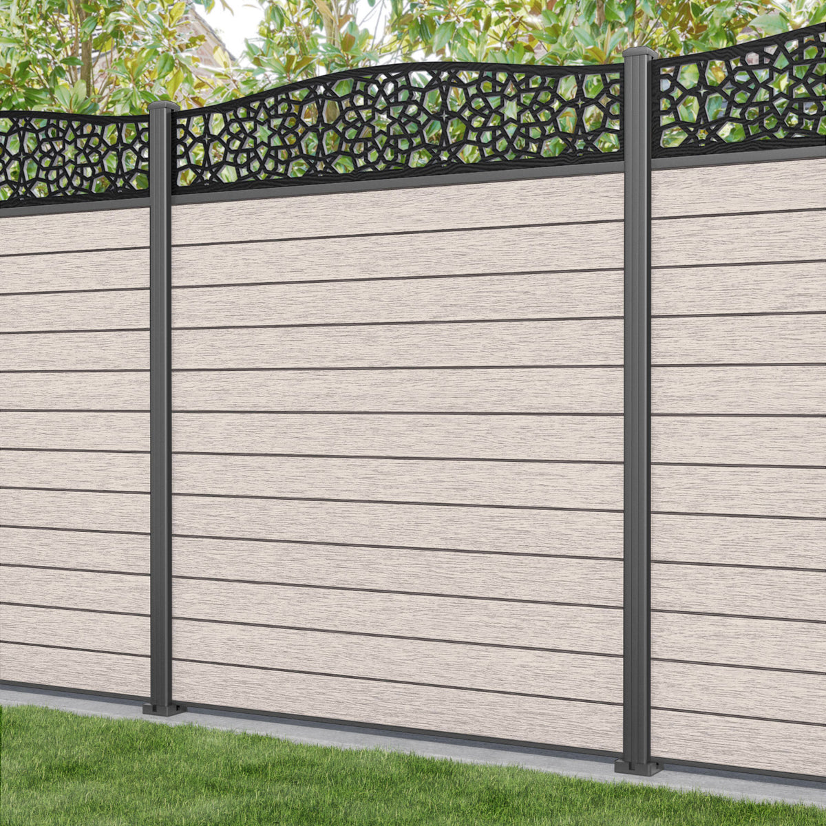 Fusion Nazira Curved Top Fence Panel Mid Stone - with our aluminium posts