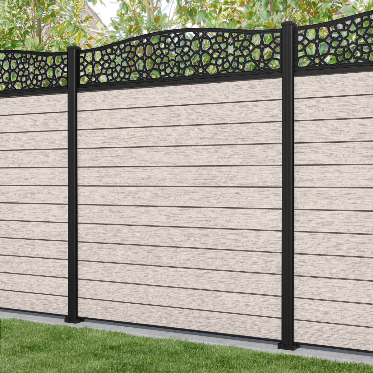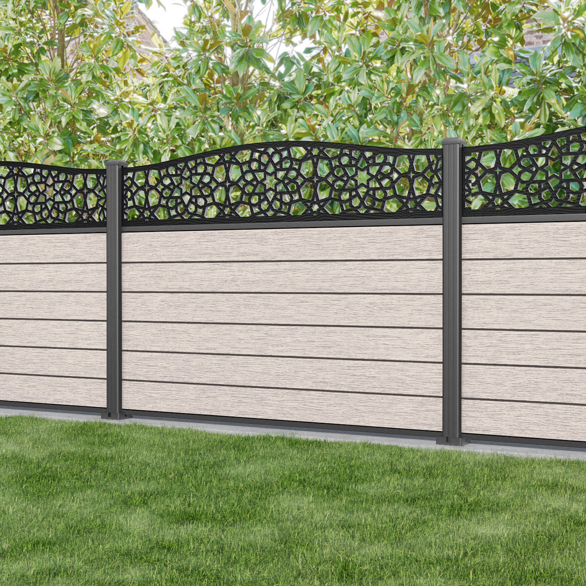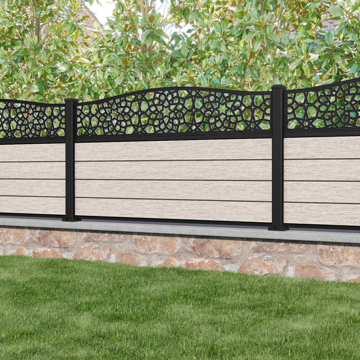 Fusion Nazira Curved Top Fence Panel Mid Stone - with our aluminium posts