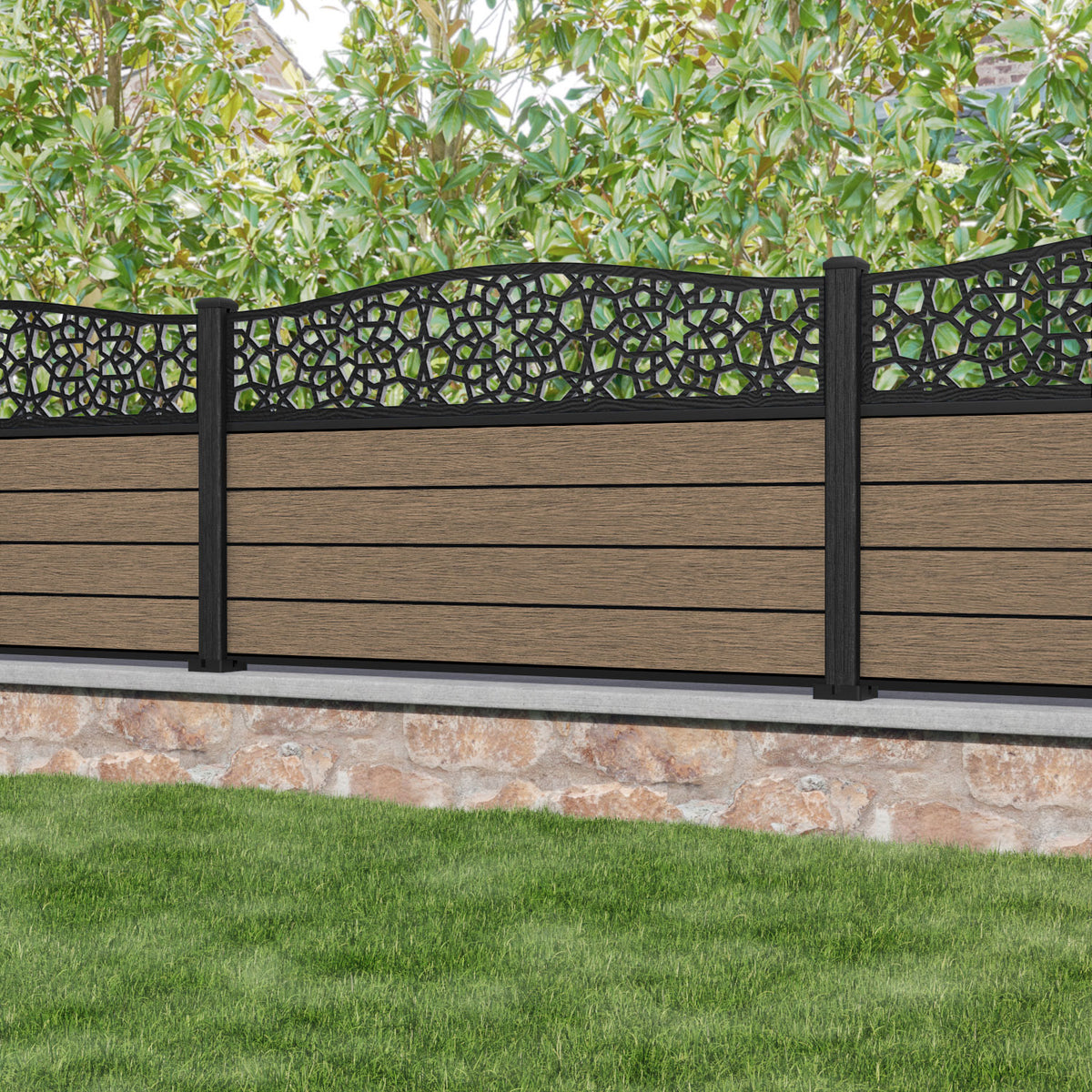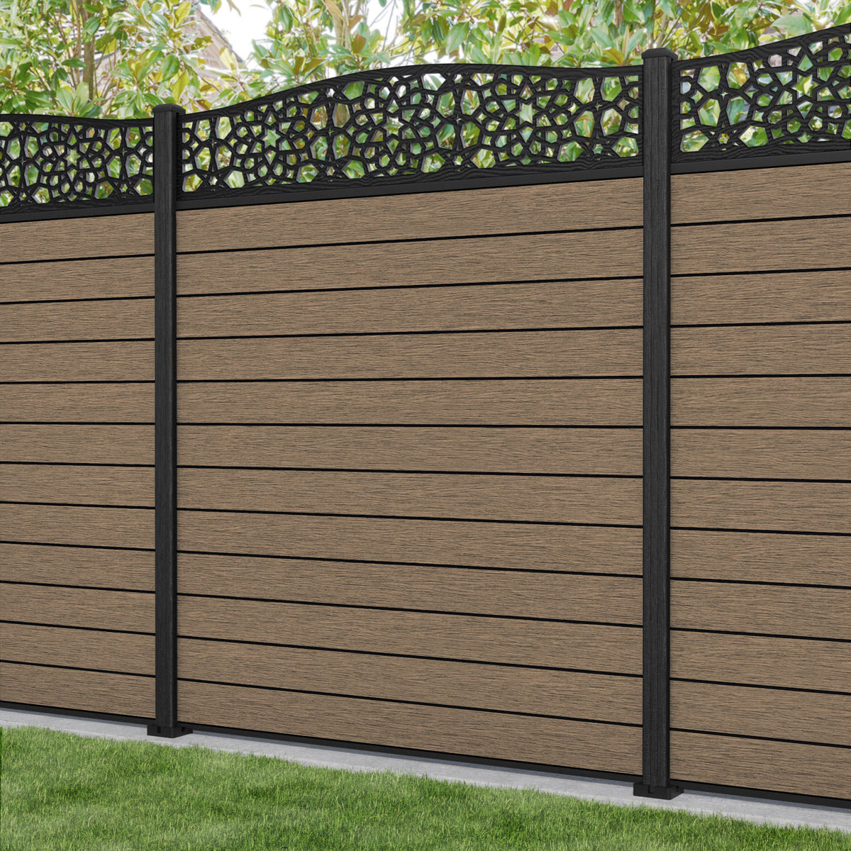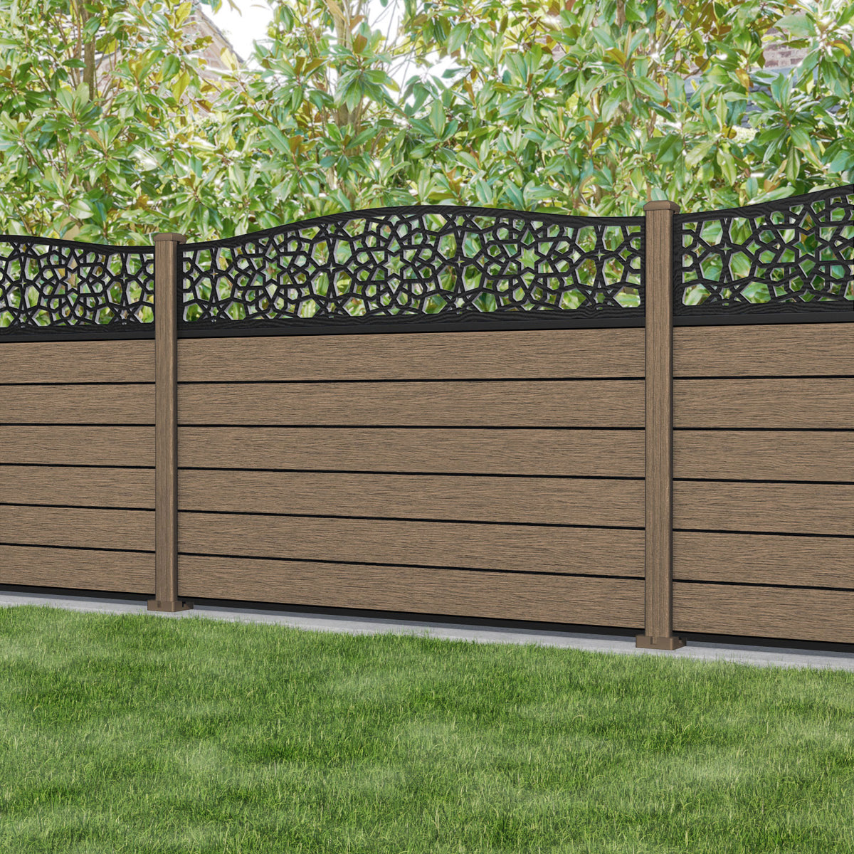 Fusion Nazira Curved Top Fence Panel Teak - with our composite posts