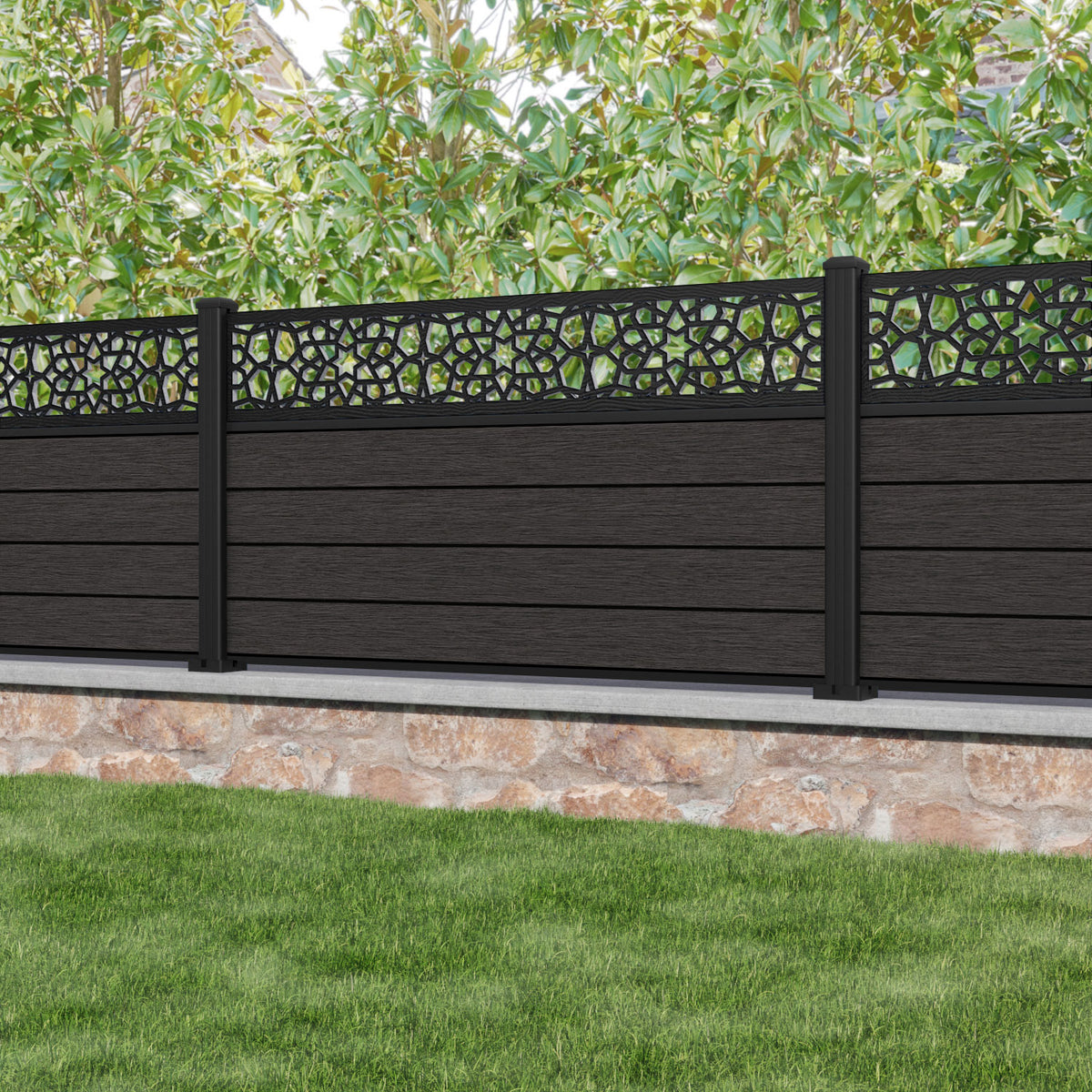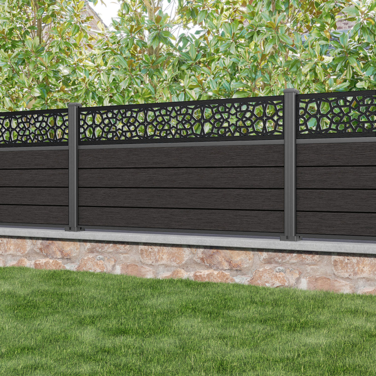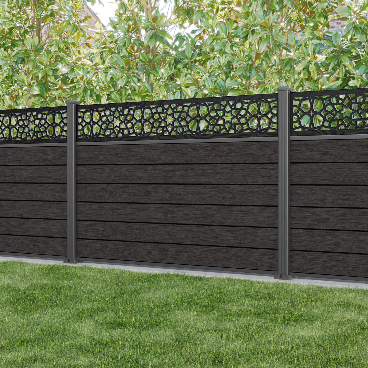 Fusion Nazira Fence Panel Dark Oak - with our aluminium posts