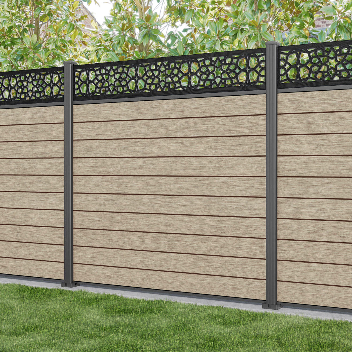 Fusion Nazira Fence Panel Light Oak - with our aluminium posts