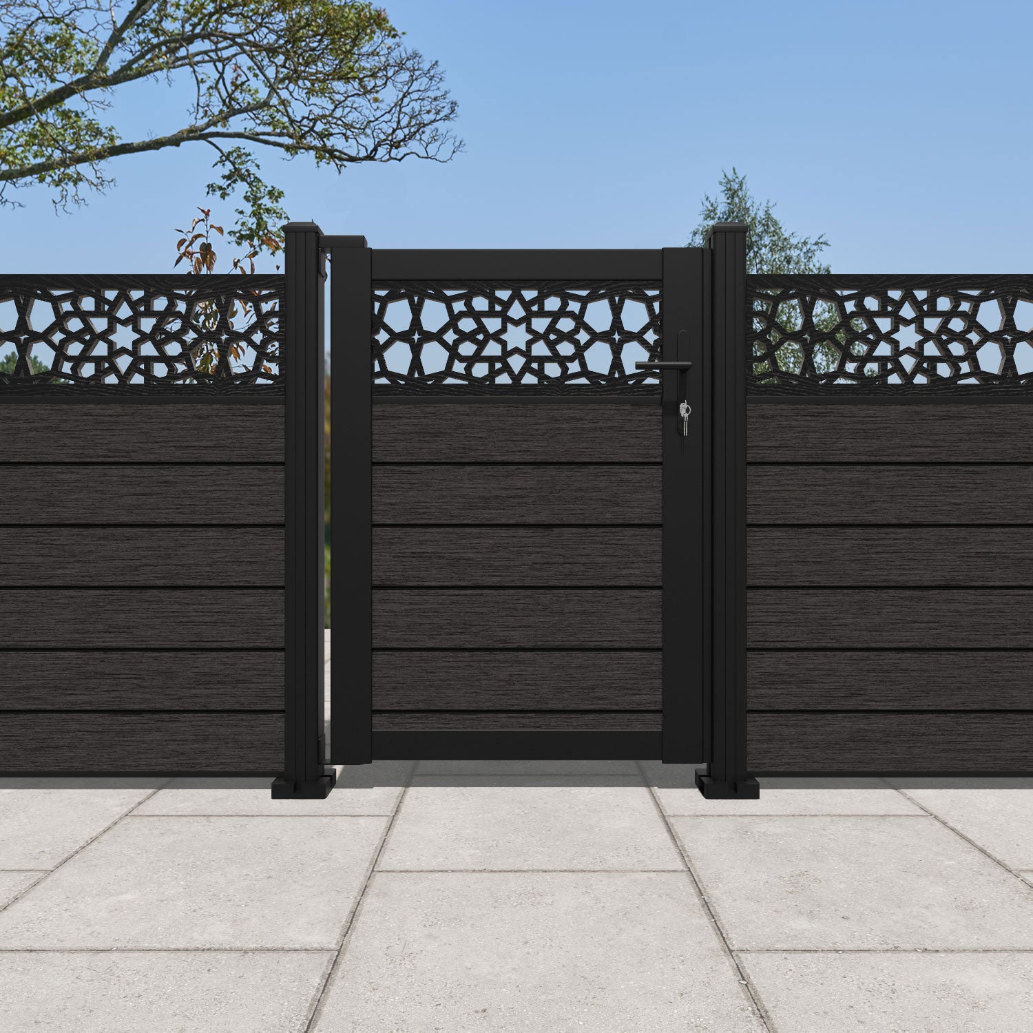 Pair your gate with our eco-friendly composite or aluminium slats for a seamless match to our fencing collections, ensuring a stylish and cohesive look.