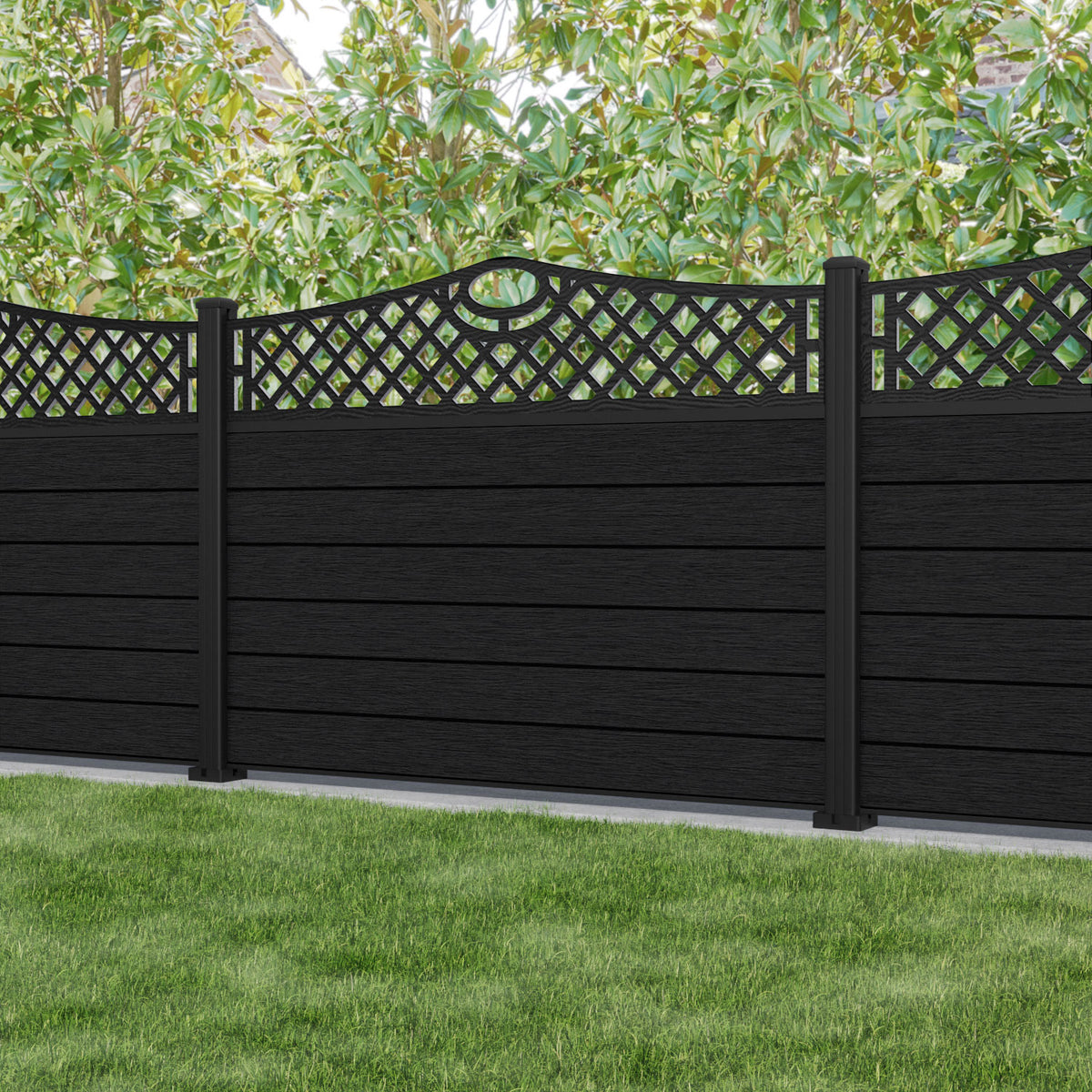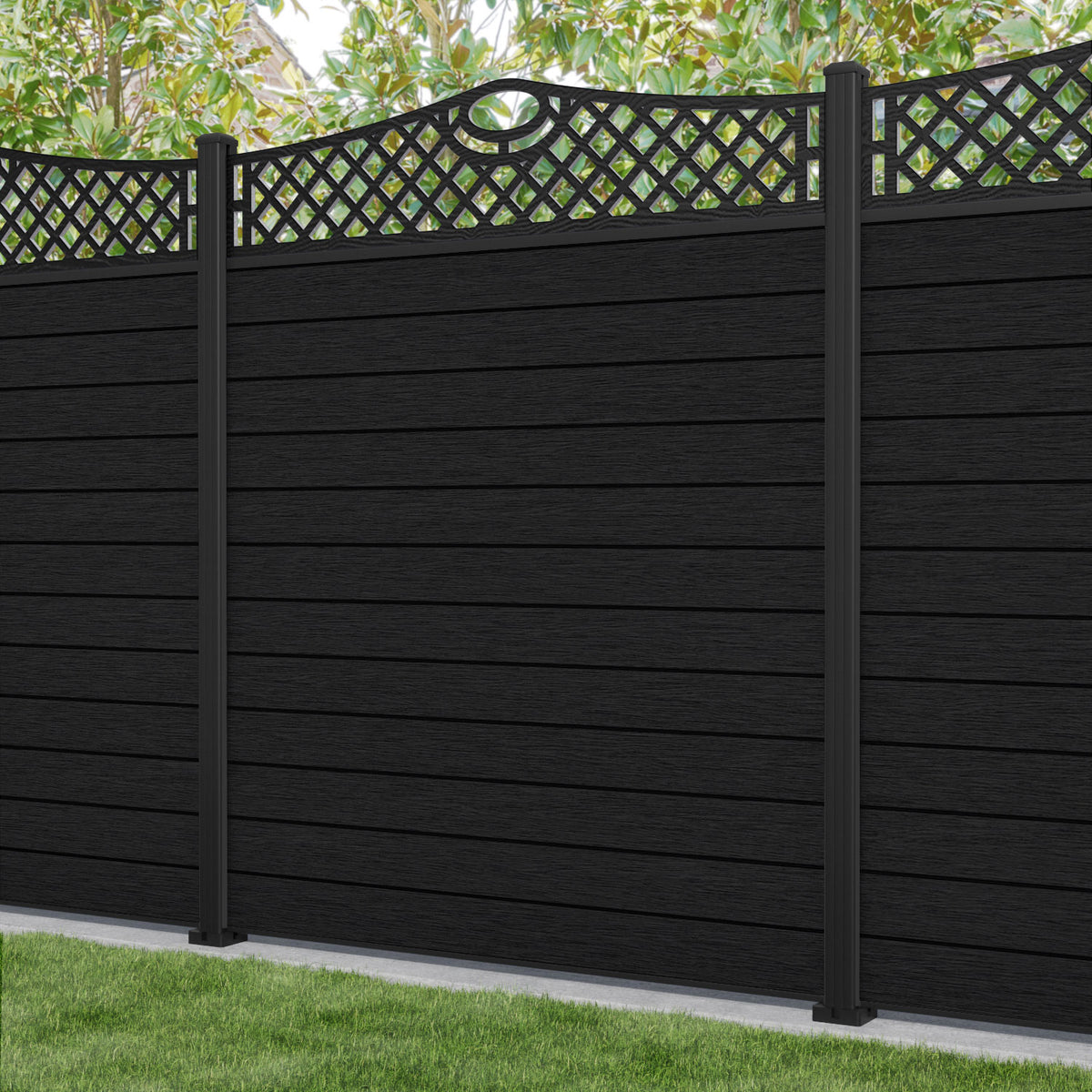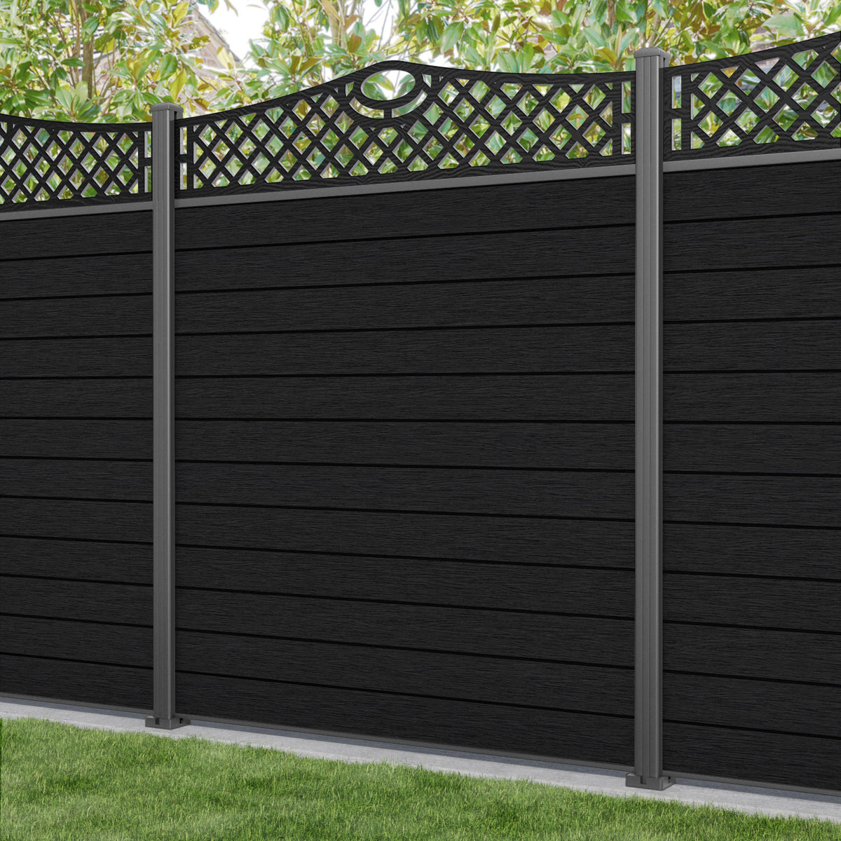 Fusion Oxford Curved Top Fence Panel Black - with our aluminium posts