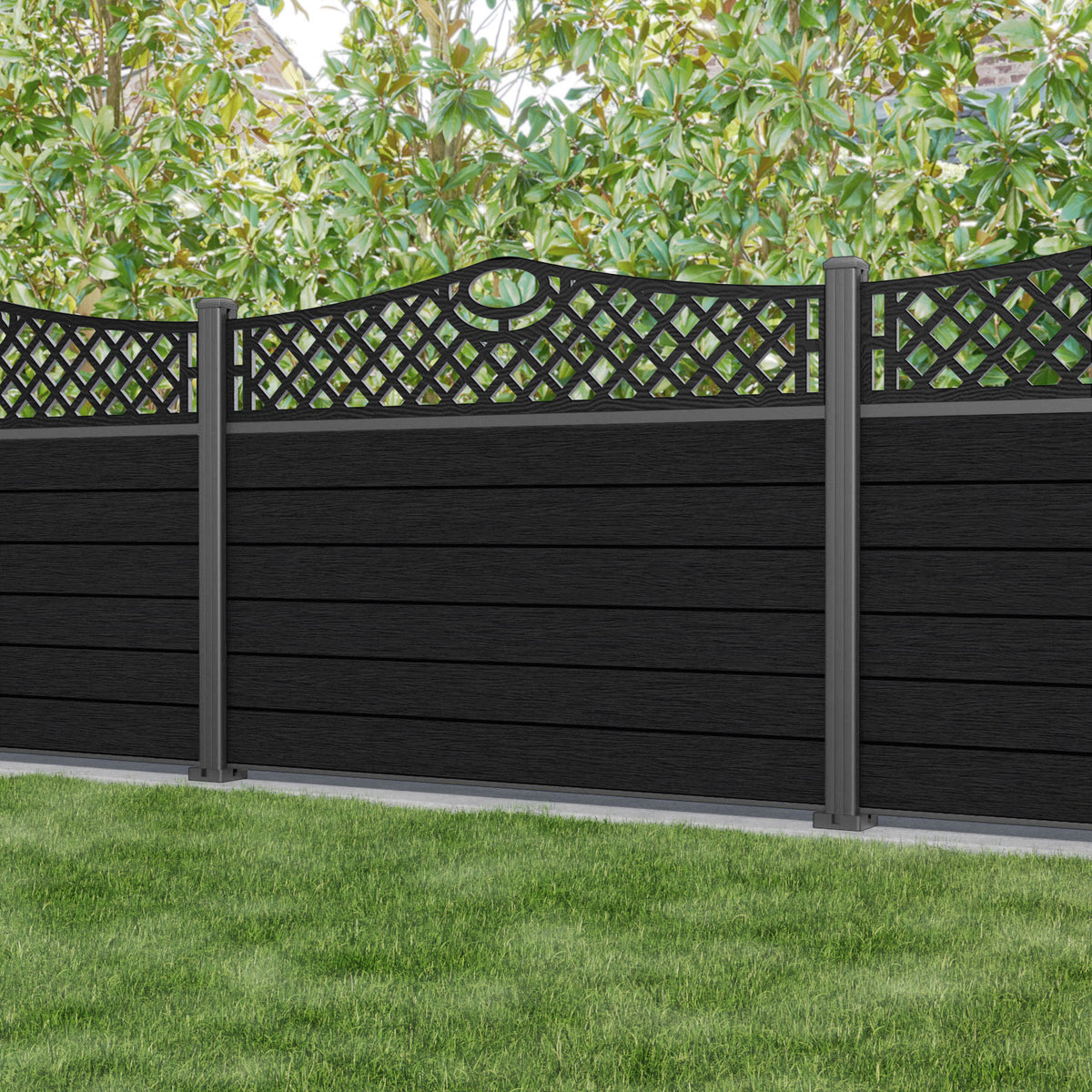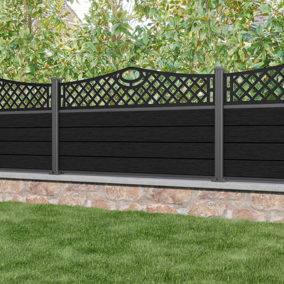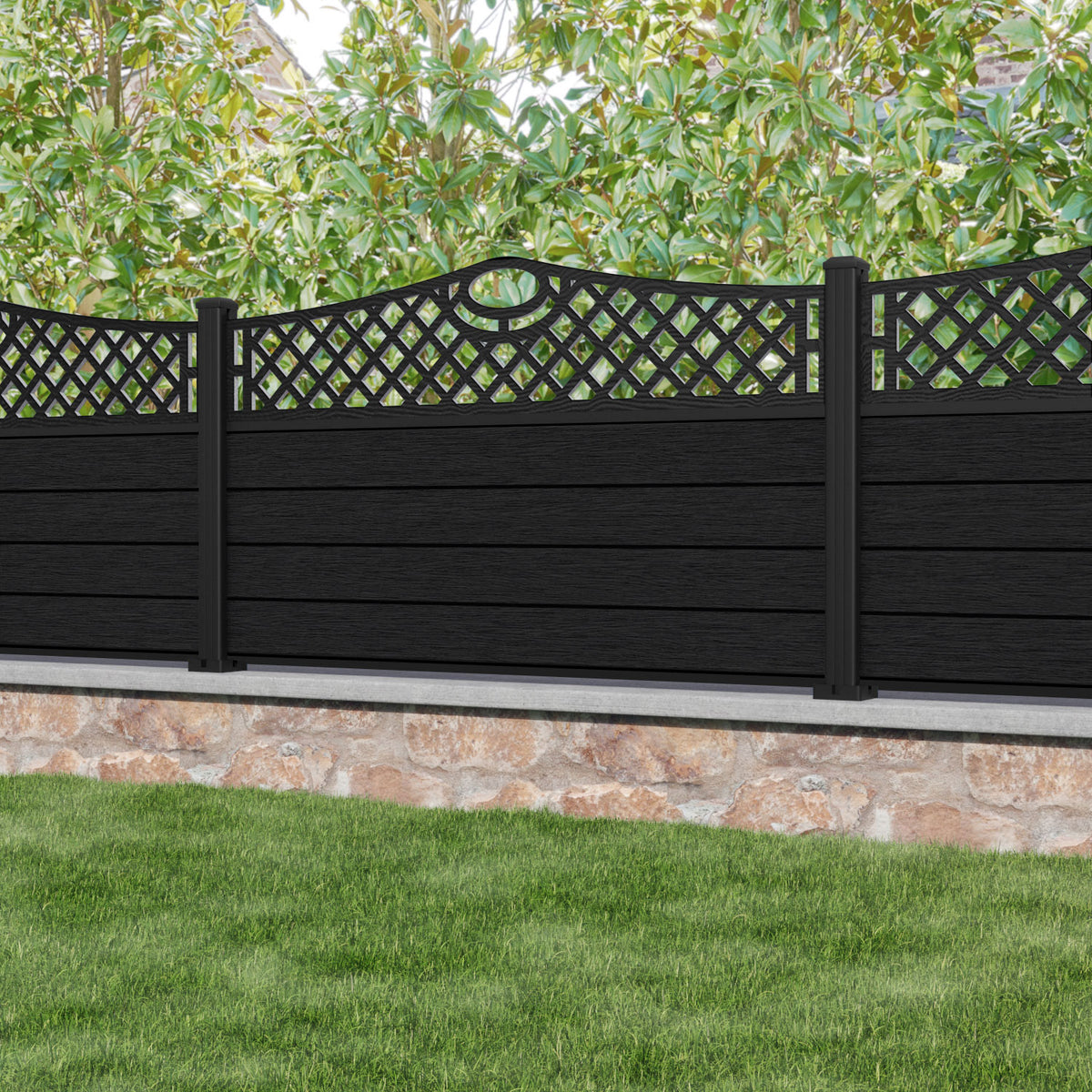 Fusion Oxford Curved Top Fence Panel Black - with our aluminium posts