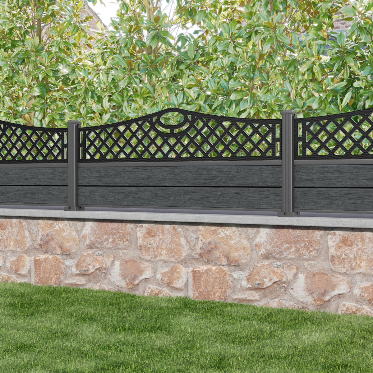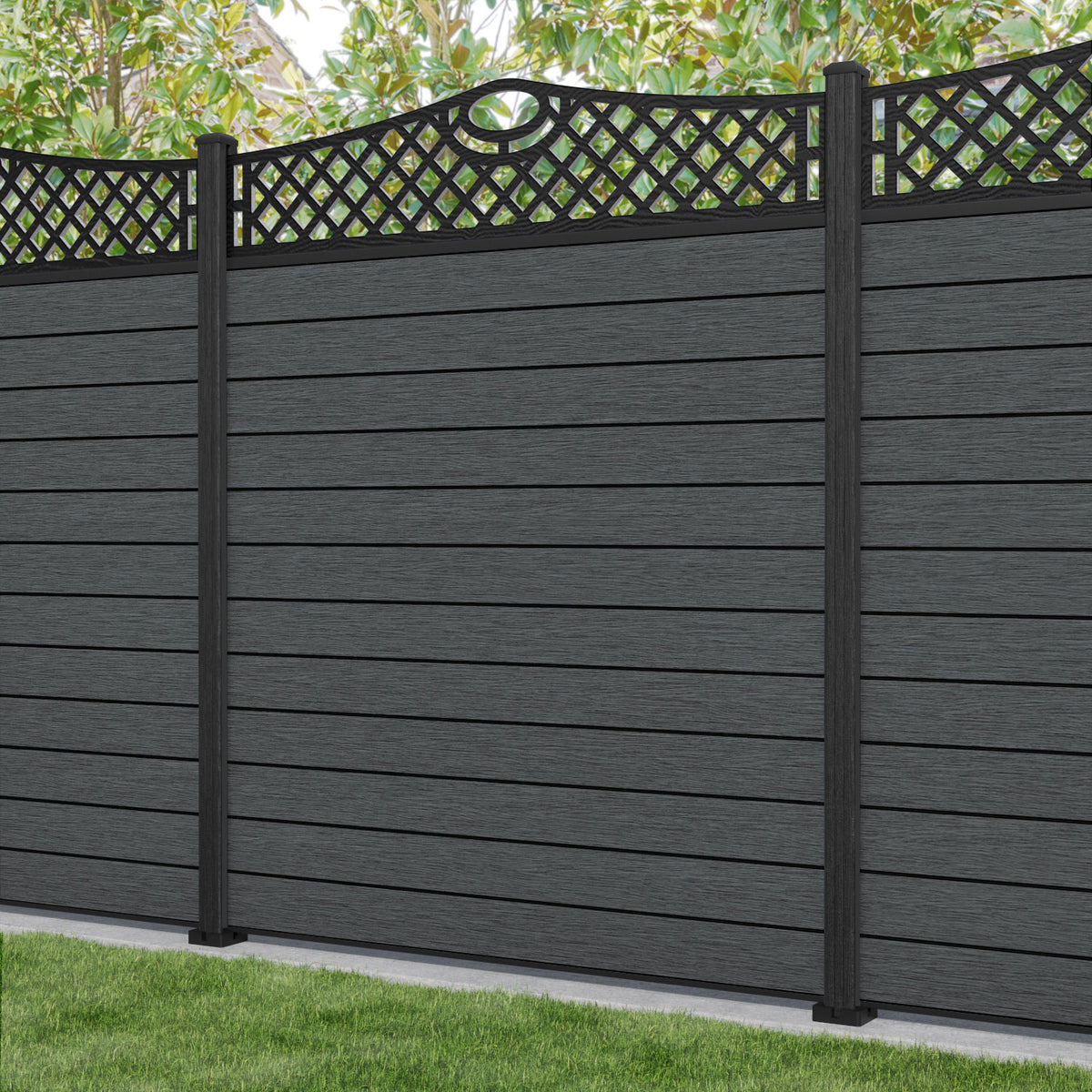 Fusion Oxford Curved Top Fence Panel Dark Grey - with our aluminium posts