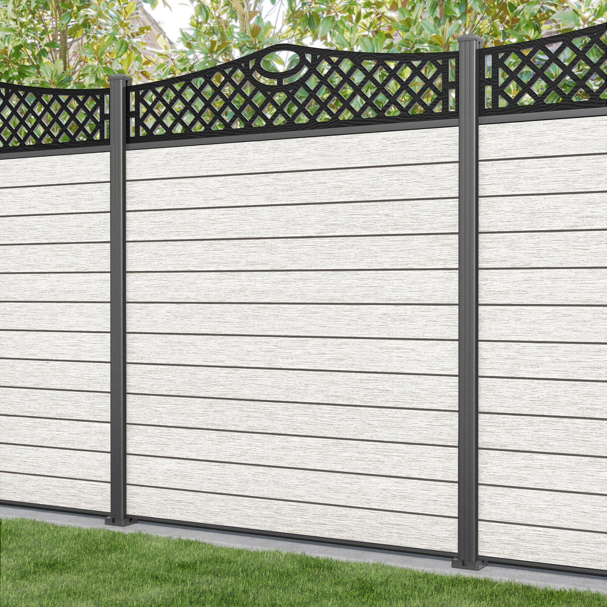 Fusion Oxford Curved Top Fence Panel Light Stone - with our aluminium posts