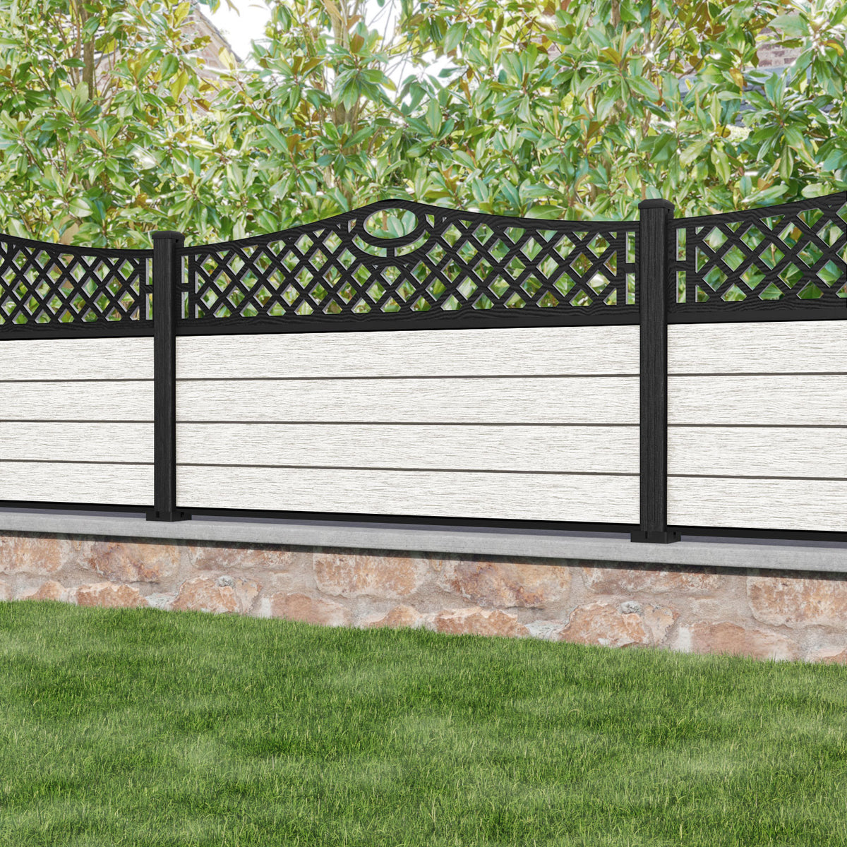 Fusion Oxford Curved Top Fence Panel Light Stone - with our composite posts