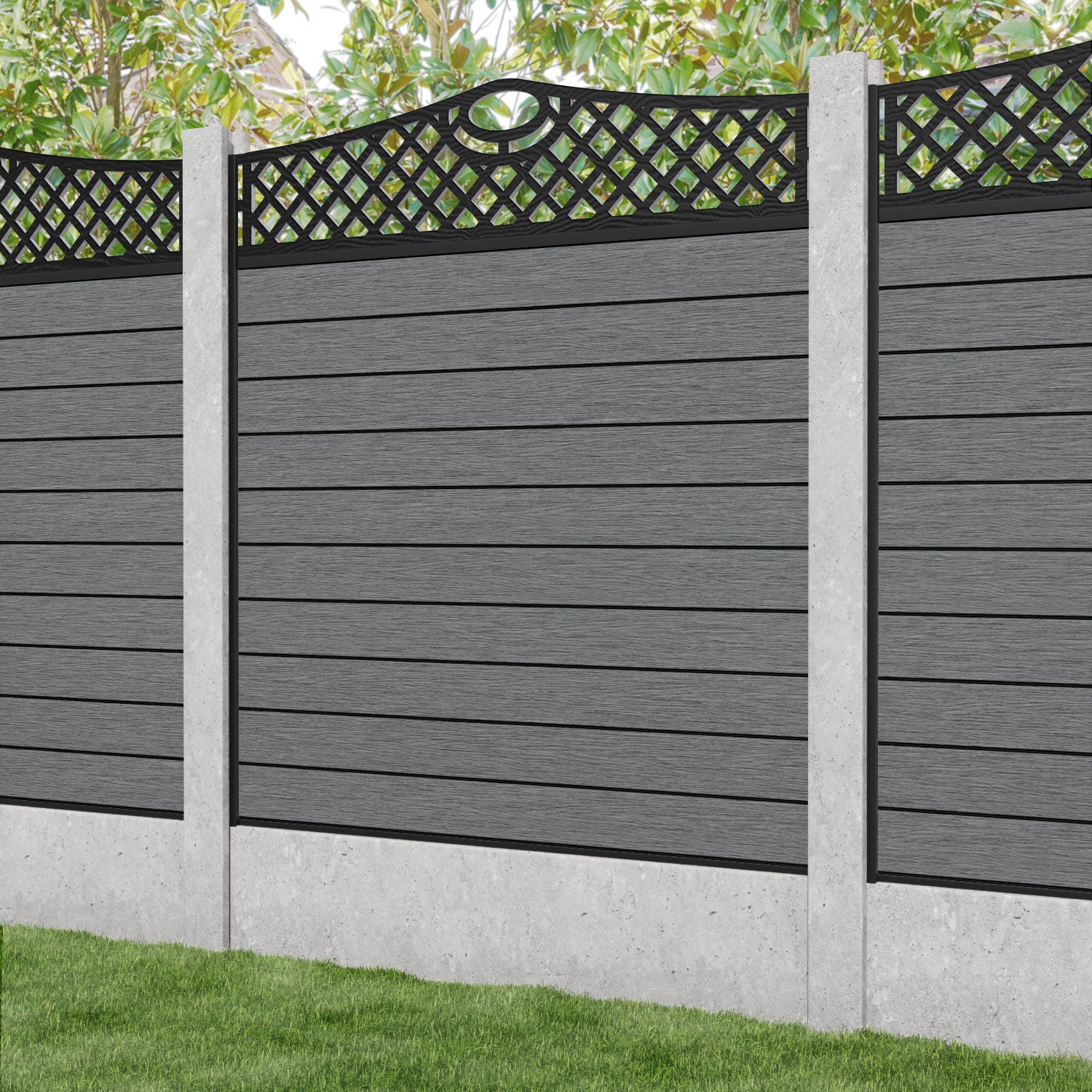 Fusion Oxford Curved Top Fence Panel Mid Grey - for existing concrete posts