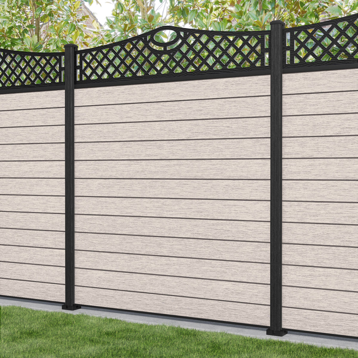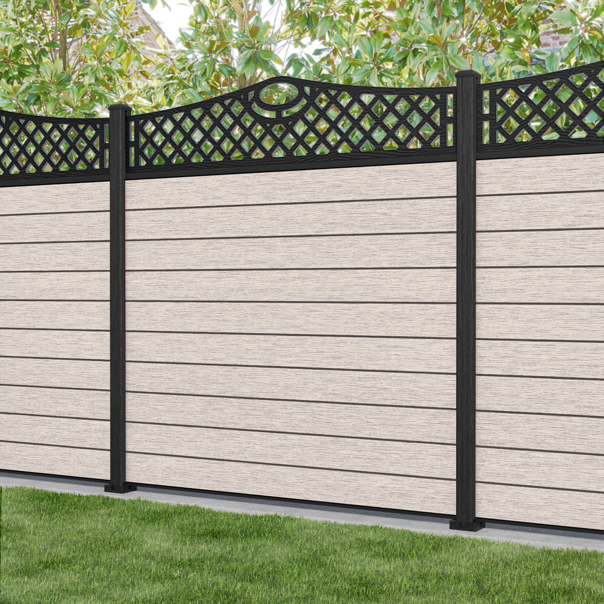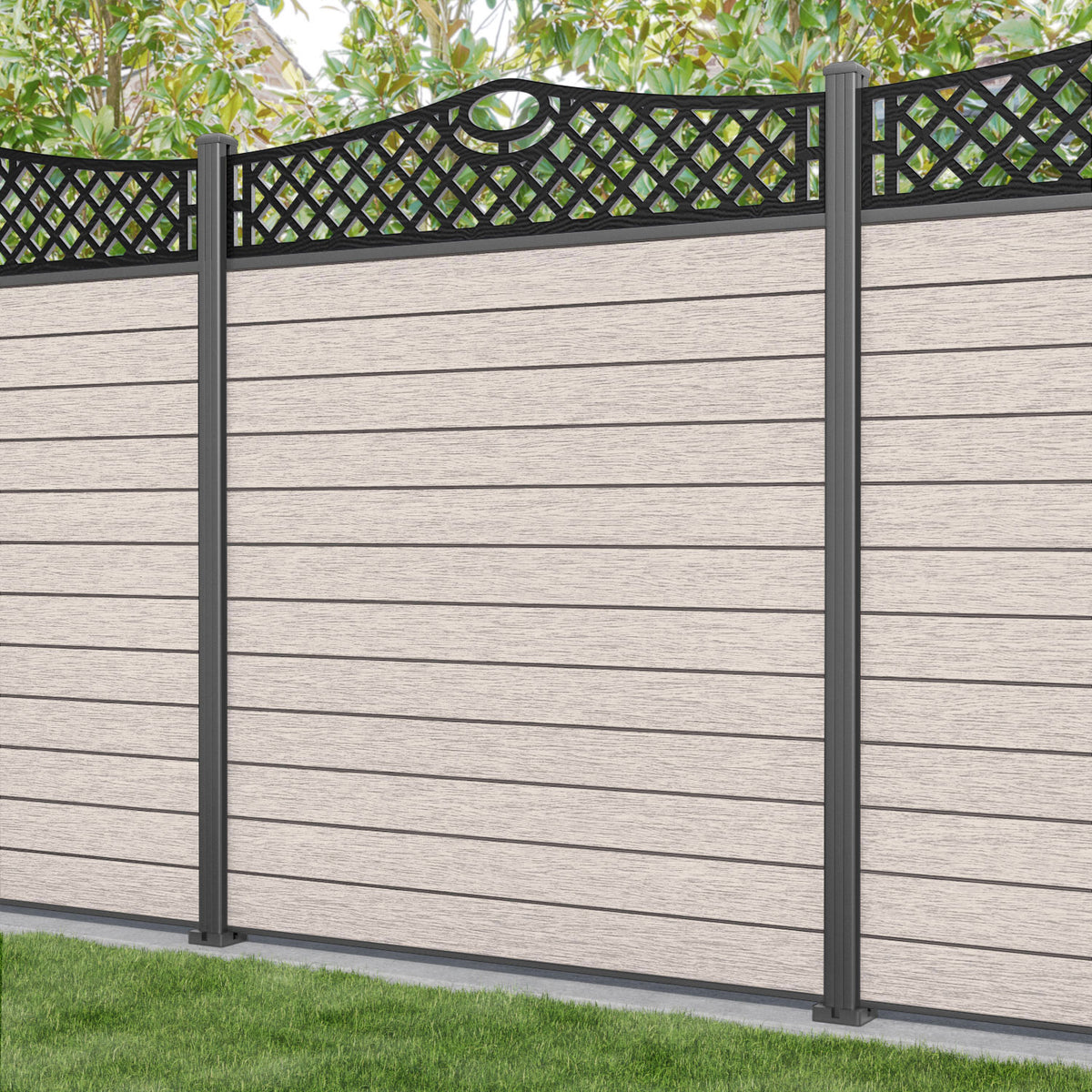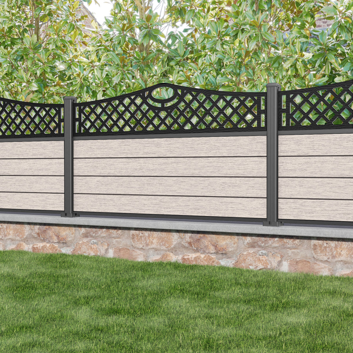 Fusion Oxford Curved Top Fence Panel Mid Stone - with our aluminium posts