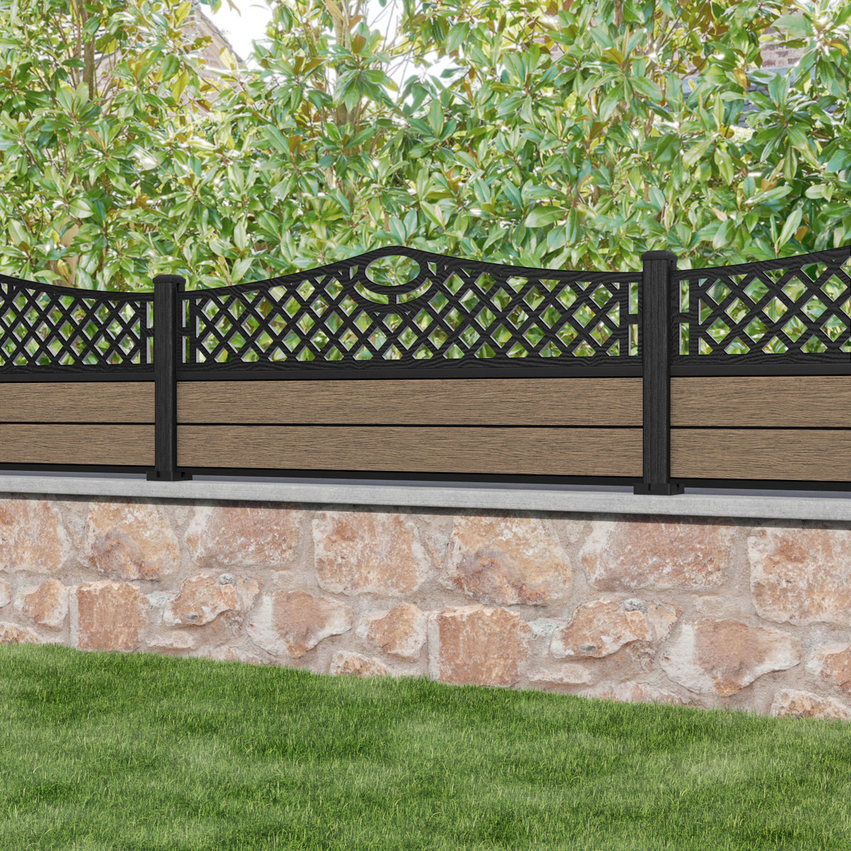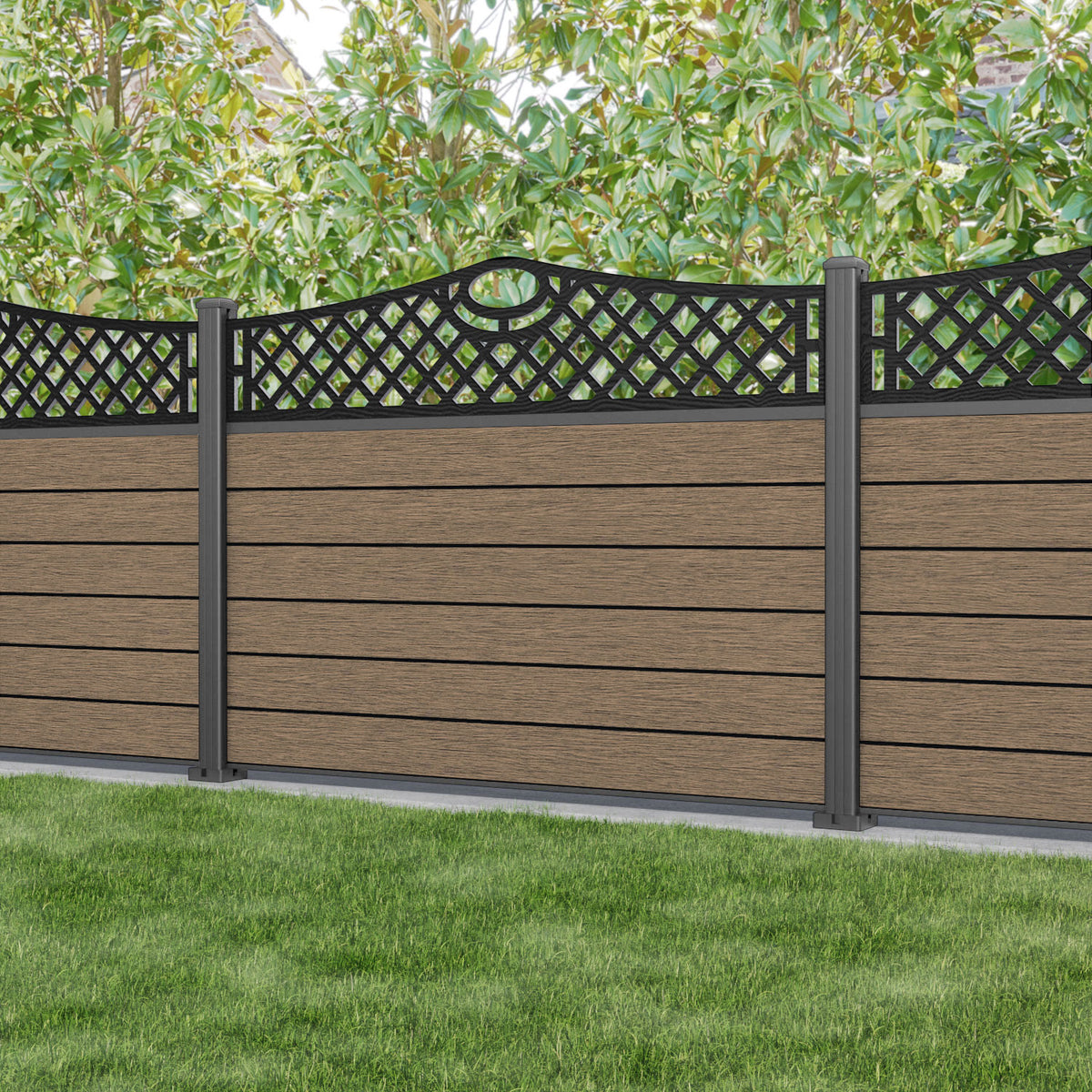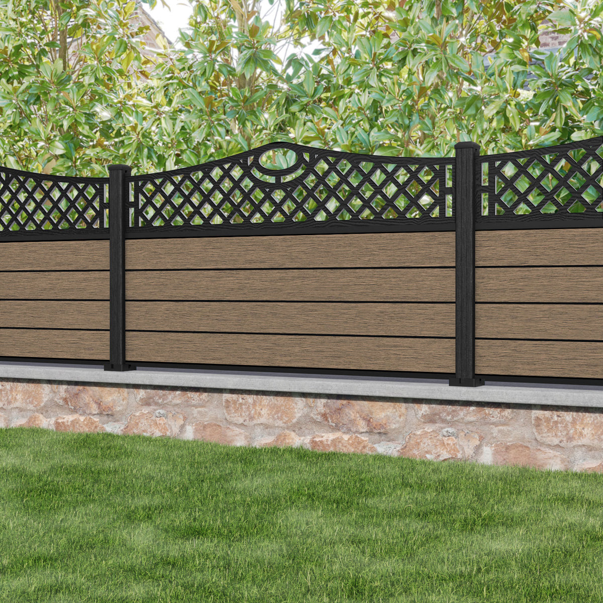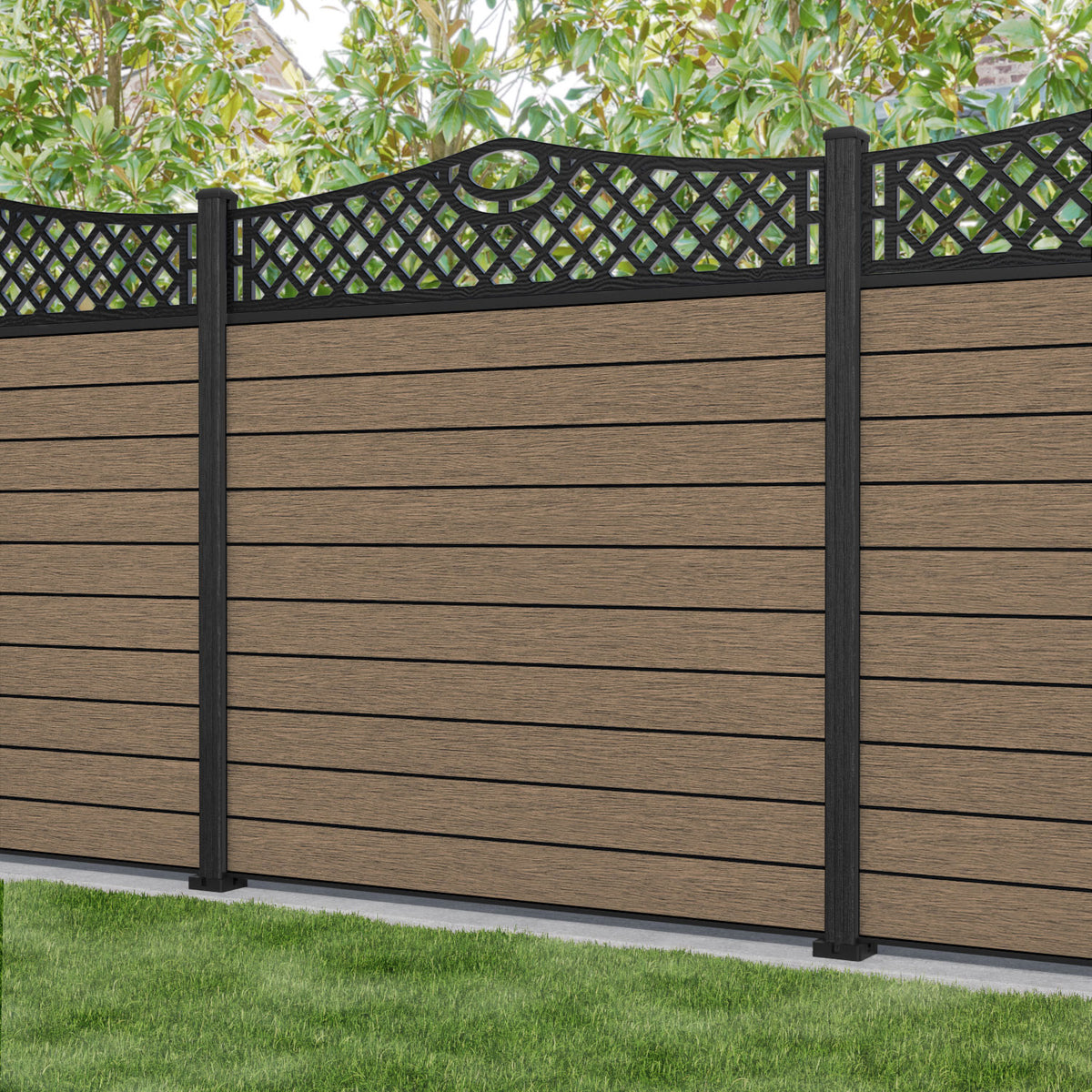 Fusion Oxford Curved Top Fence Panel Teak - with our aluminium posts