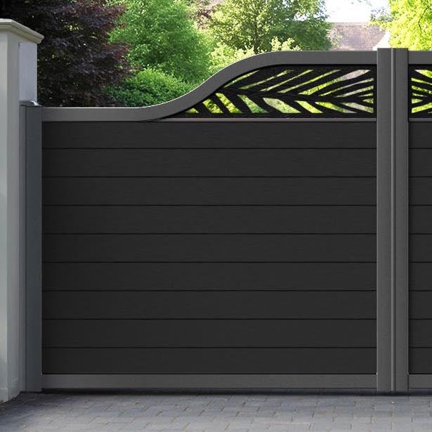 Fusion Palm Curved Top Driveway Gate Black - Top Screen