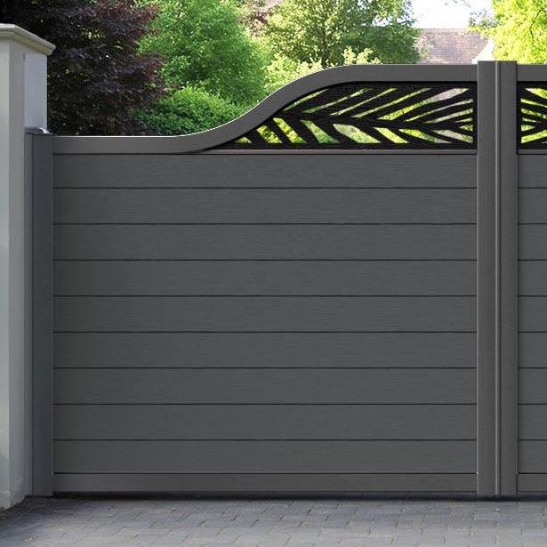 Fusion Palm Curved Top Driveway Gate Dark Grey - Top Screen