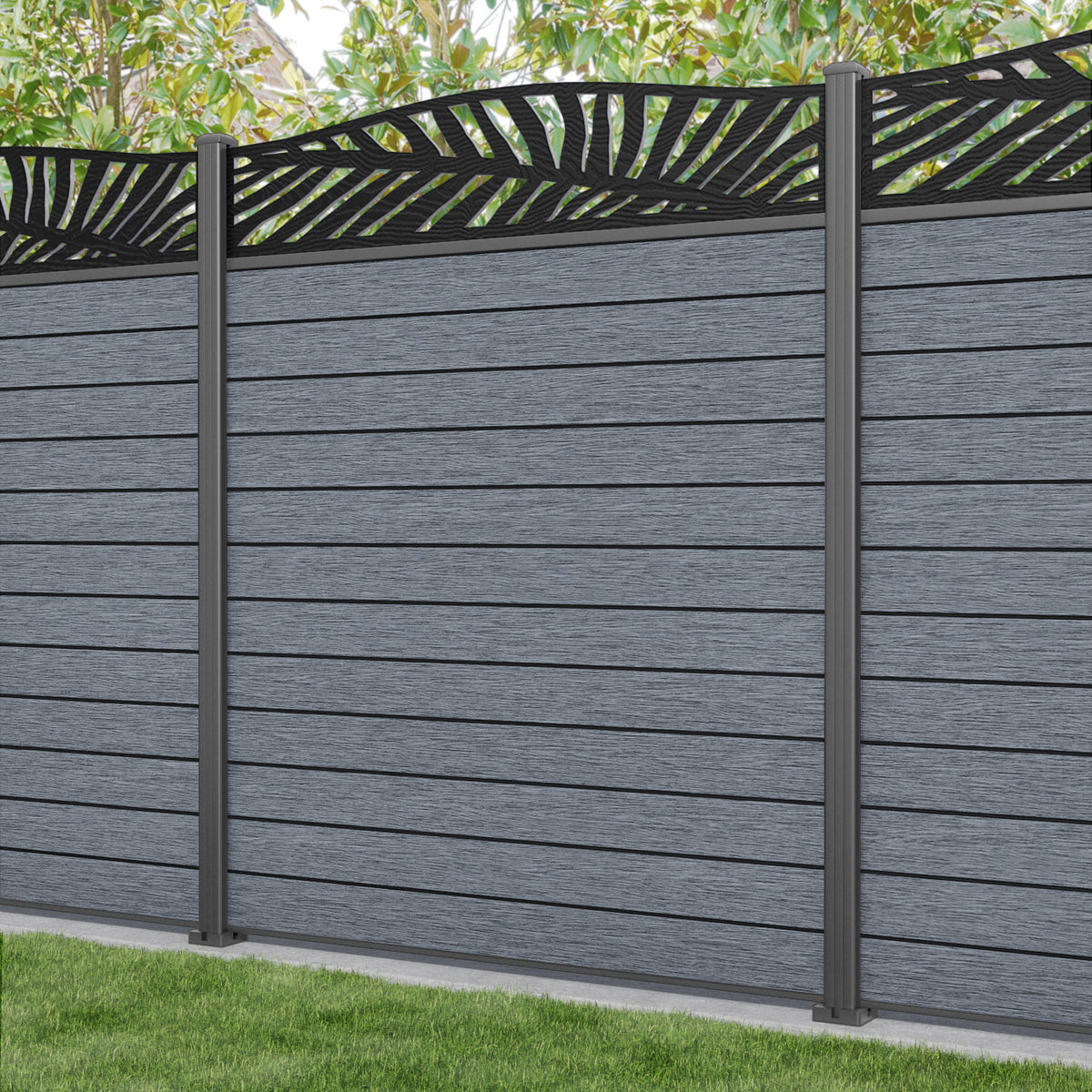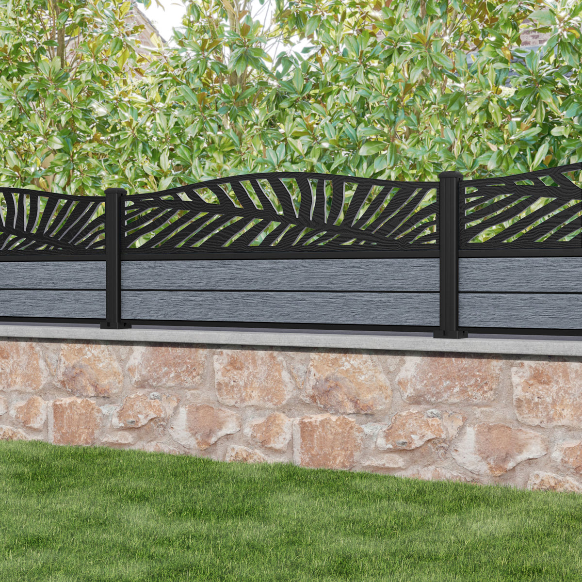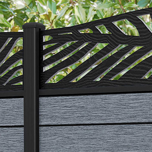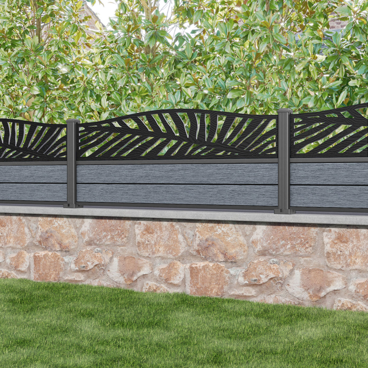 Fusion Palm Curved Top Fence Panel Anthracite - with our aluminium posts