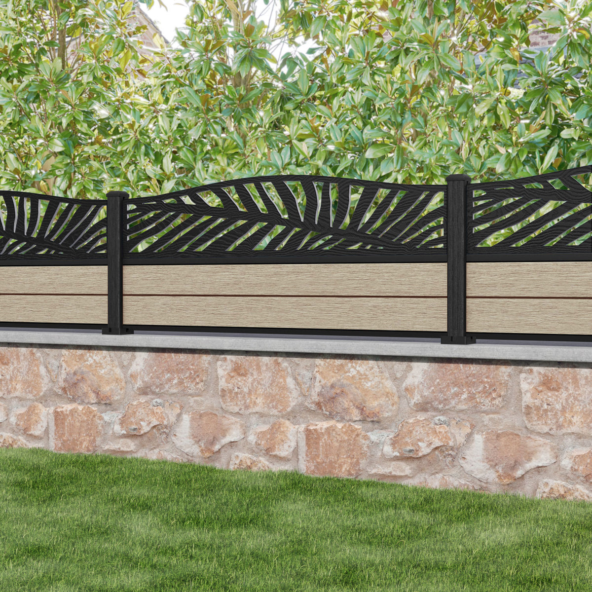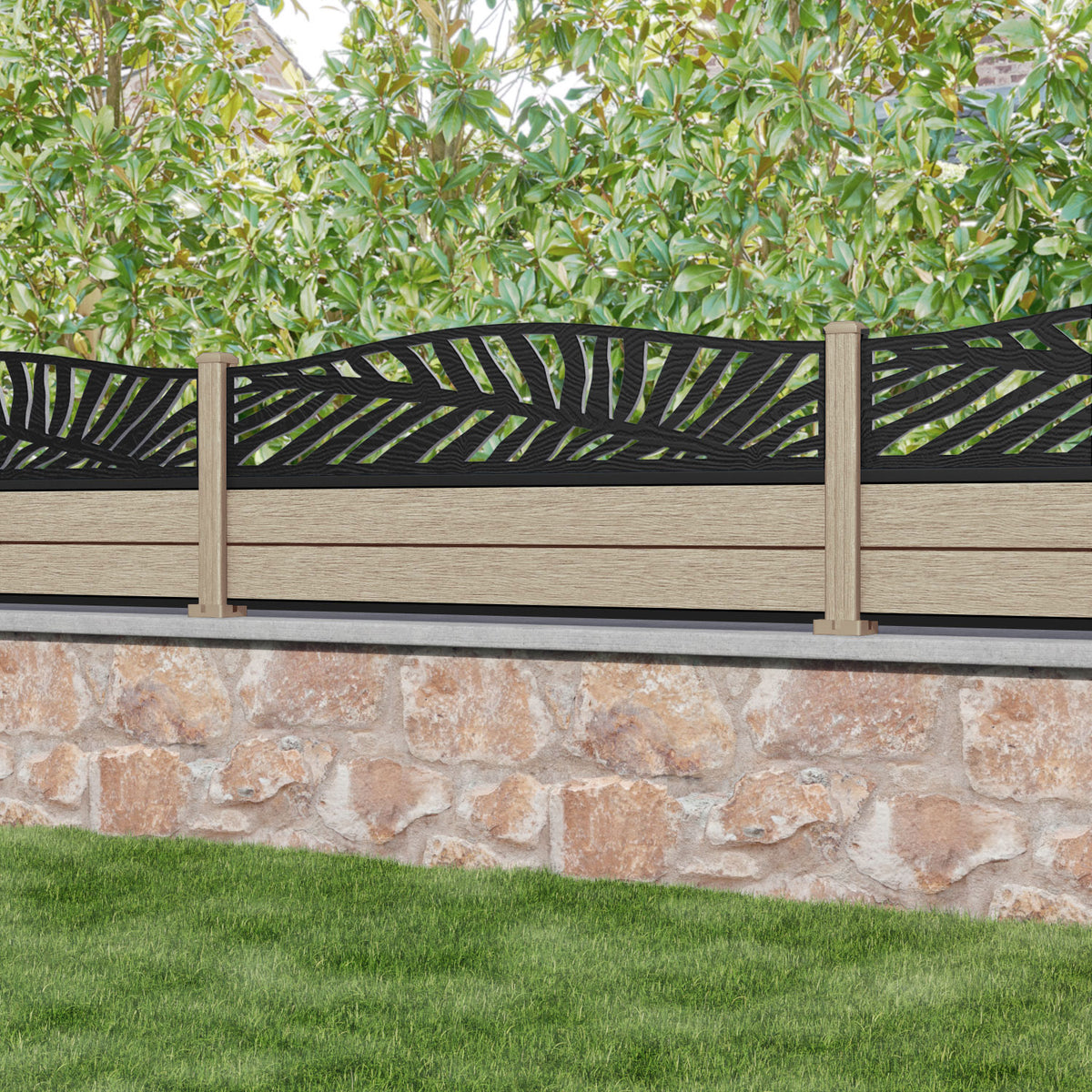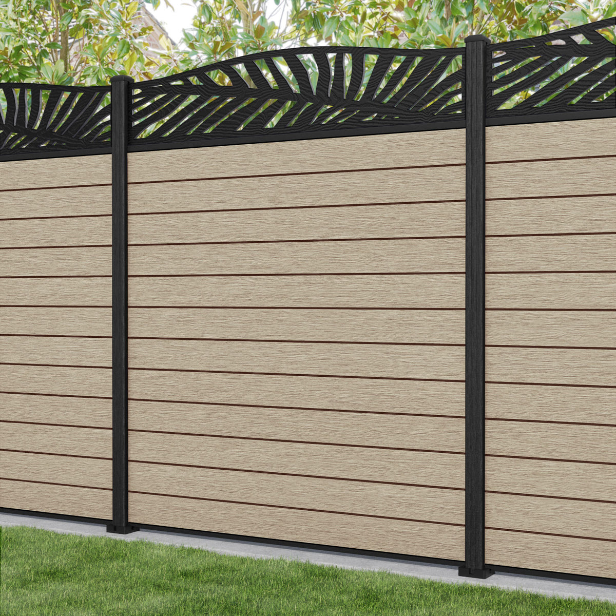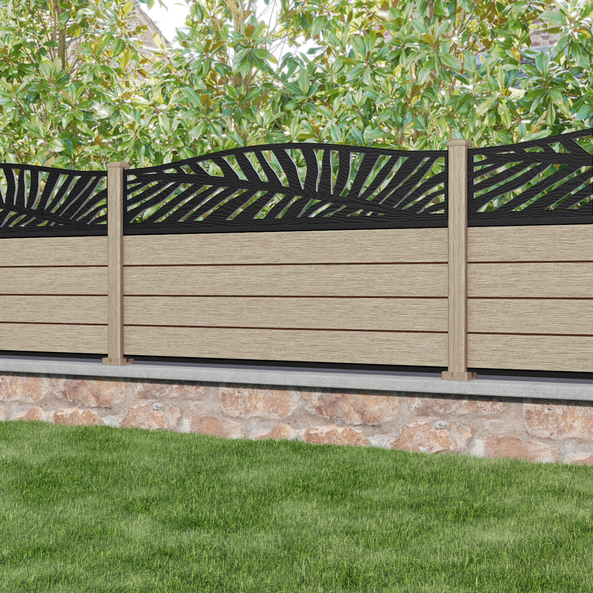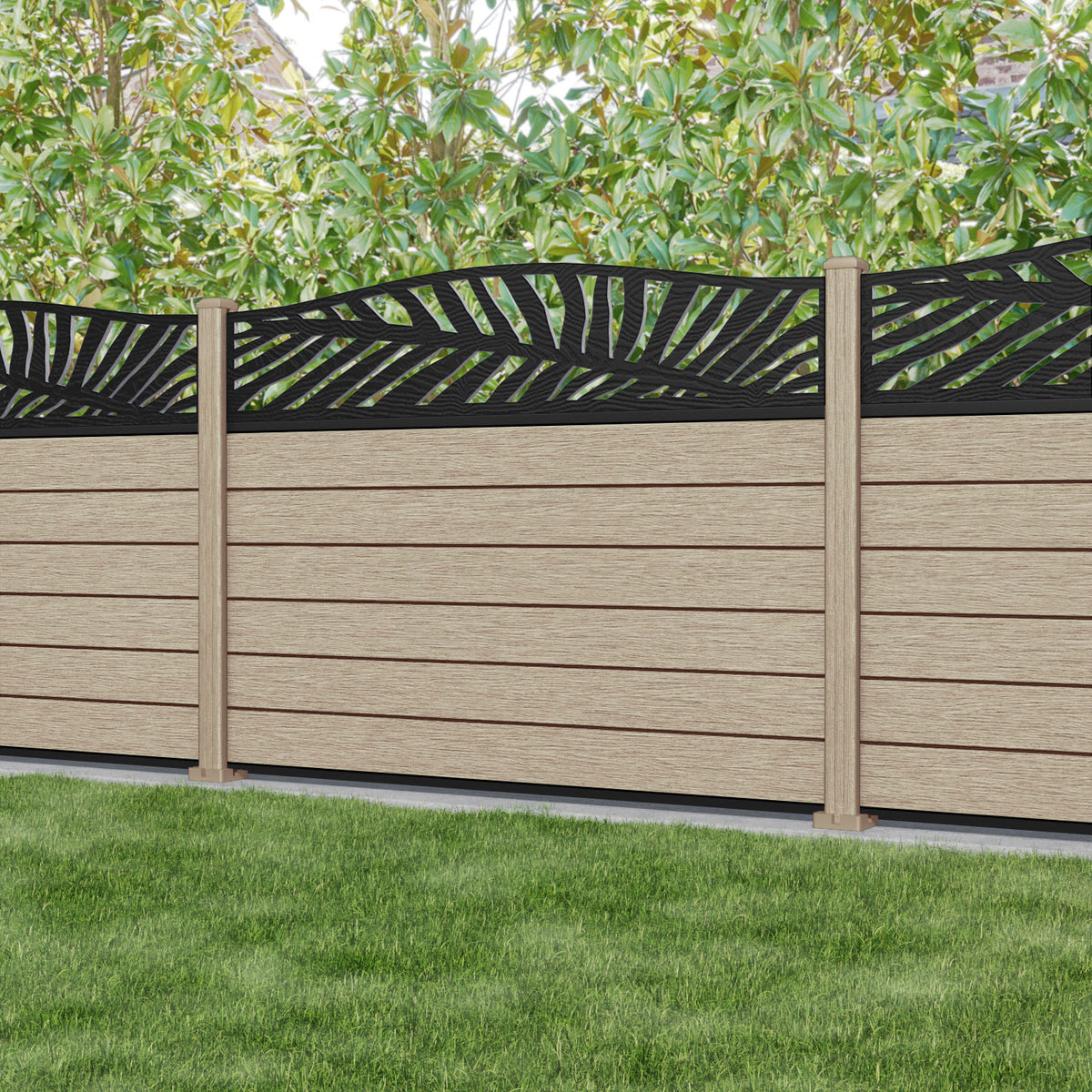 Fusion Palm Curved Top Fence Panel Light Oak - with our composite posts