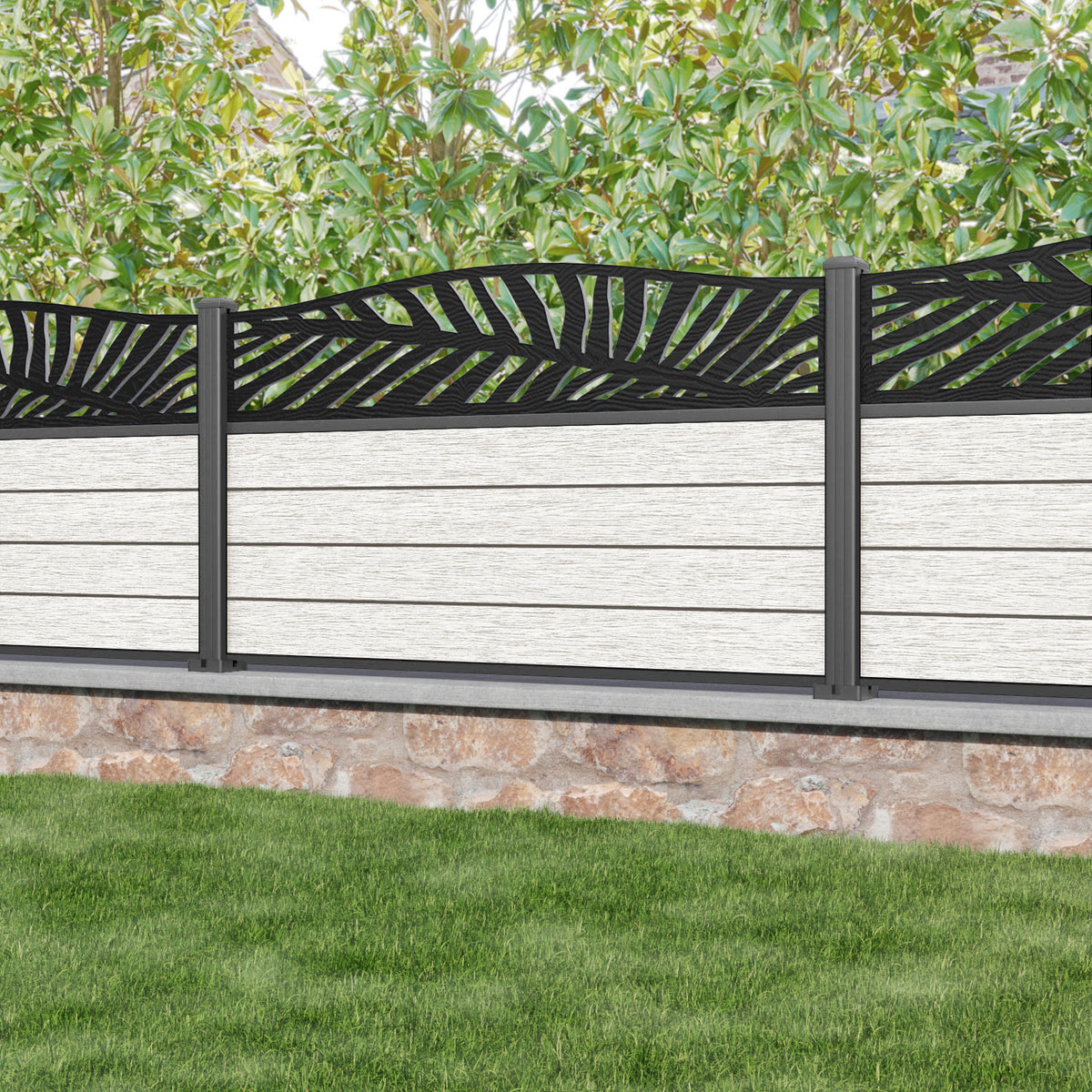 Fusion Palm Curved Top Fence Panel Light Stone - with our aluminium posts