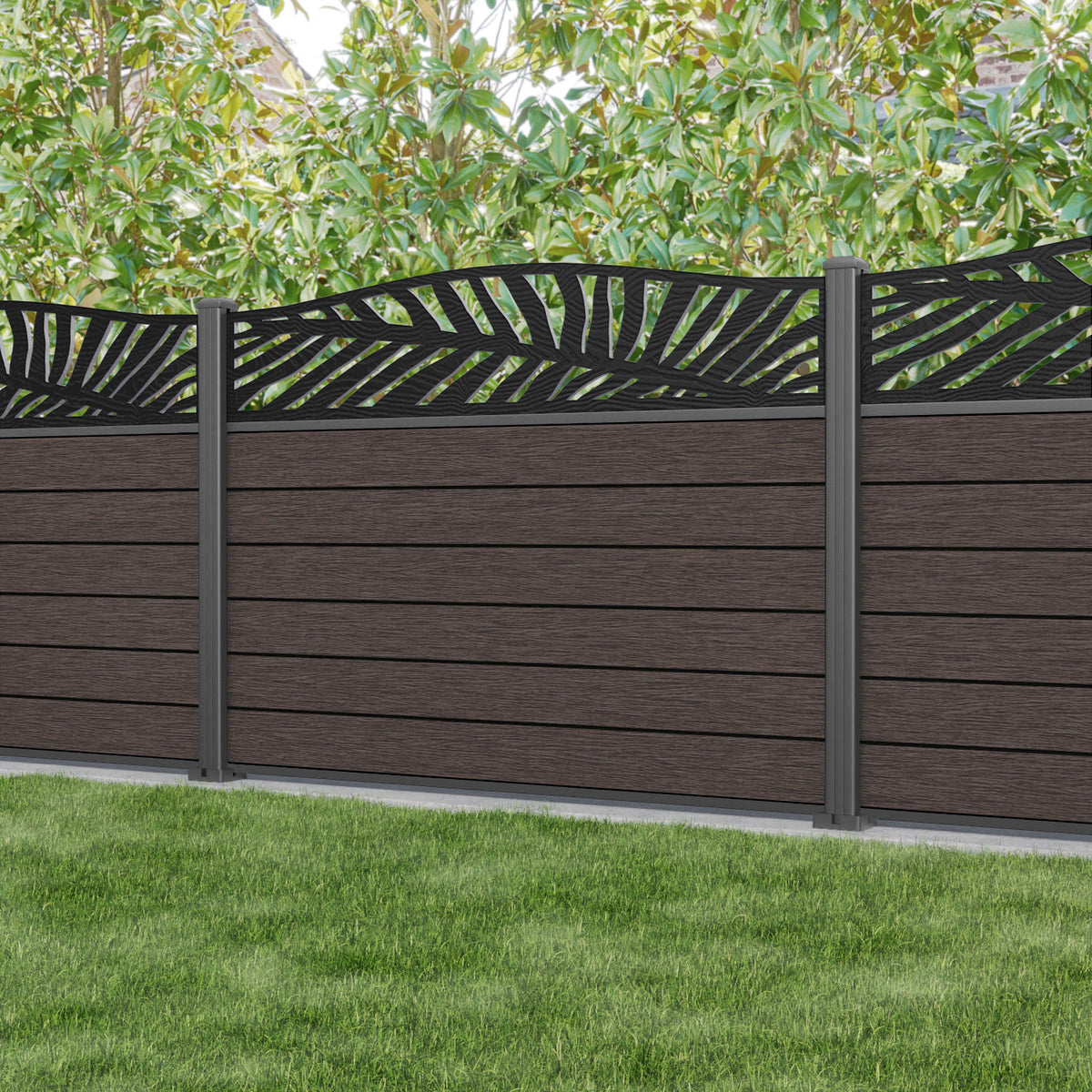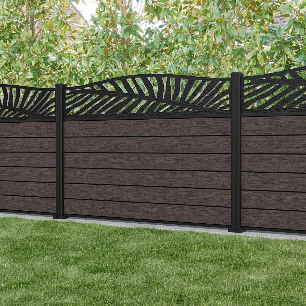 Fusion Palm Curved Top Fence Panel Mid Brown - with our aluminium posts