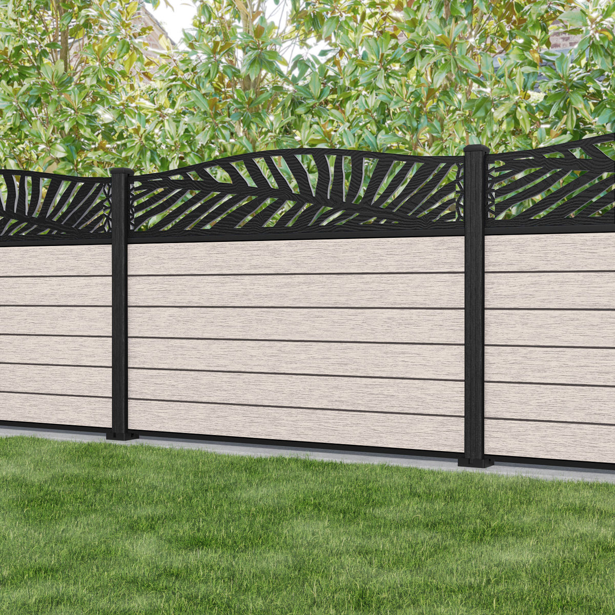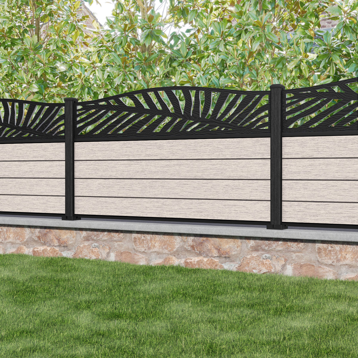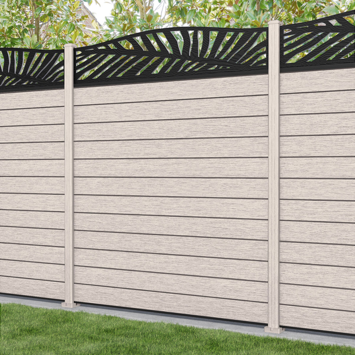 Fusion Palm Curved Top Fence Panel Mid Stone - with our composite posts