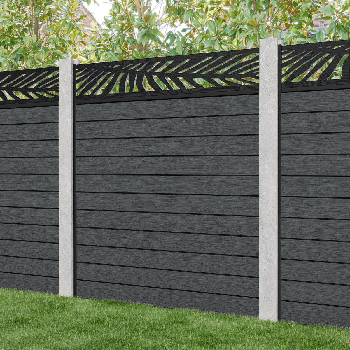 Fusion Palm Fence Panel Dark Grey - for existing concrete posts