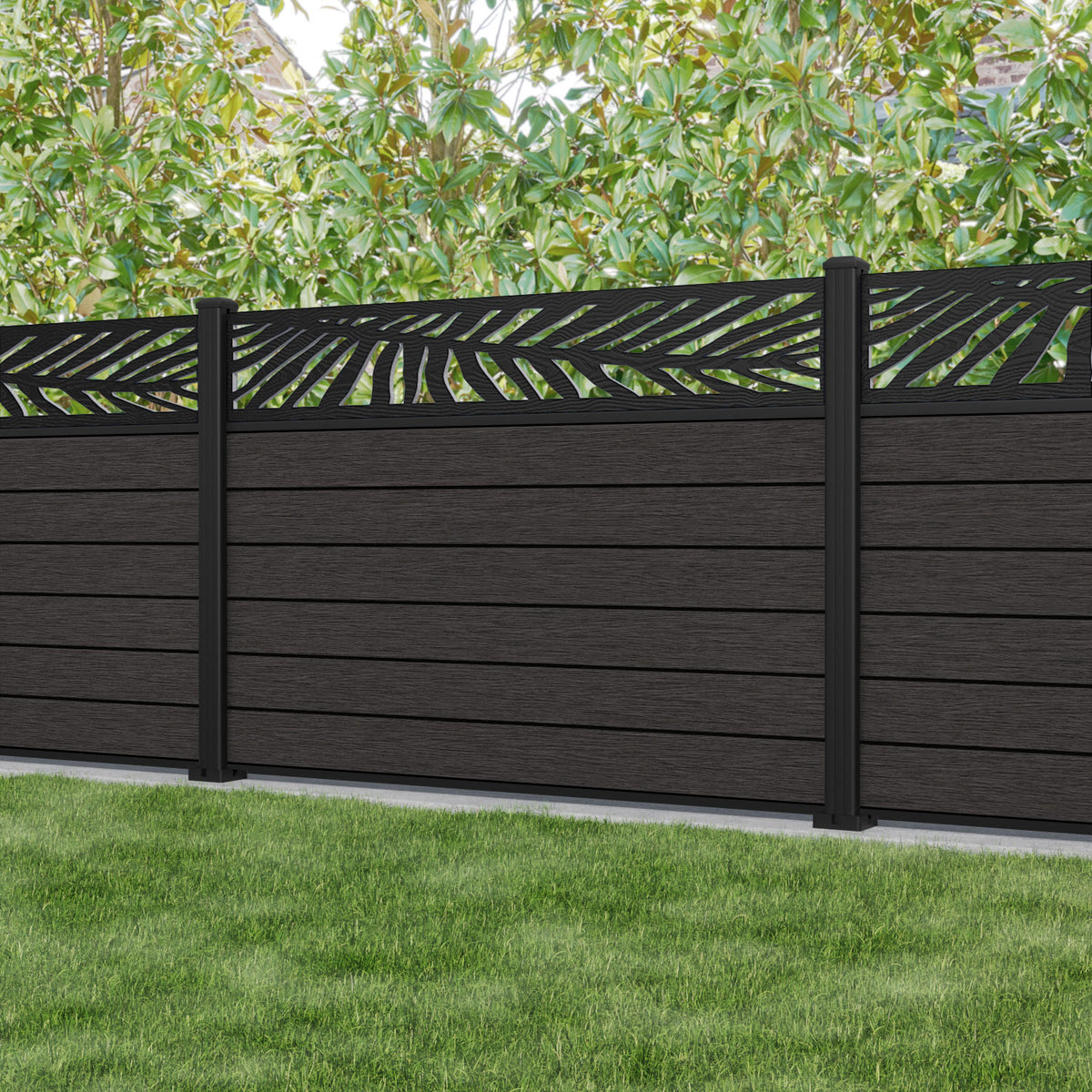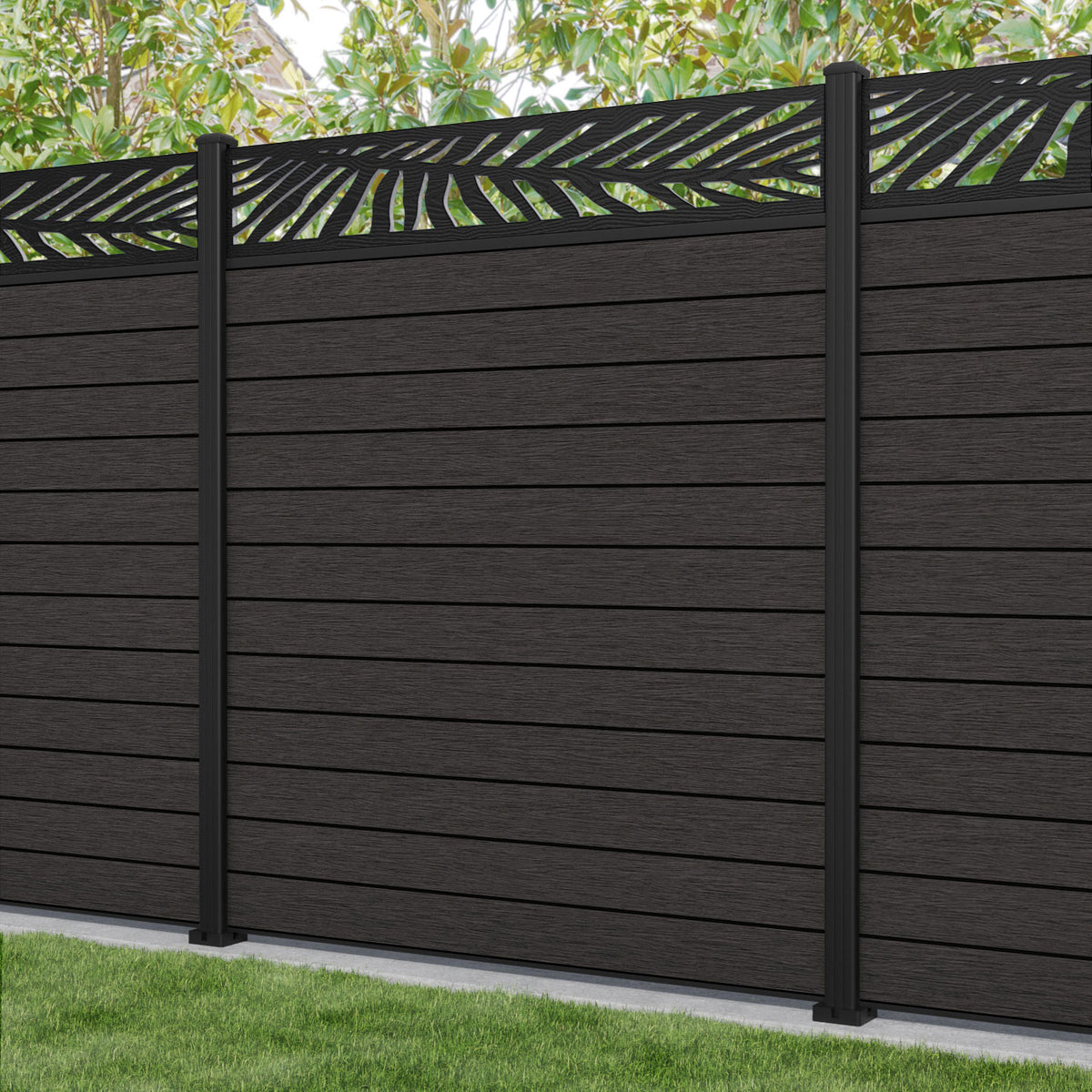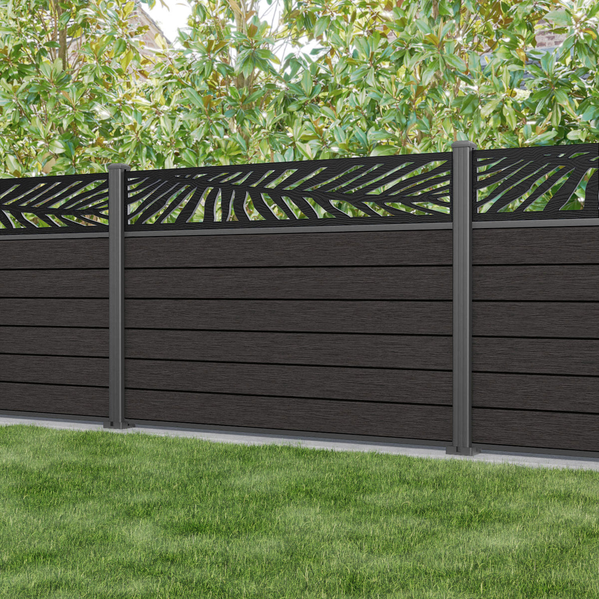 Fusion Palm Fence Panel Dark Oak - with our aluminium posts