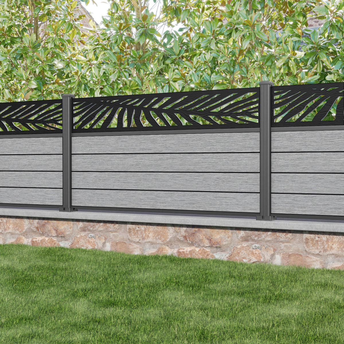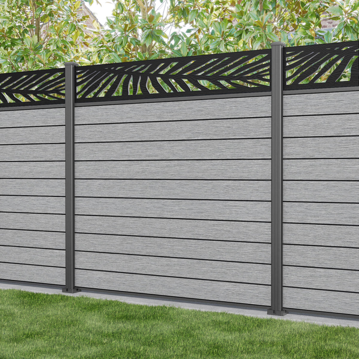 Fusion Palm Fence Panel Light Grey - with our aluminium posts
