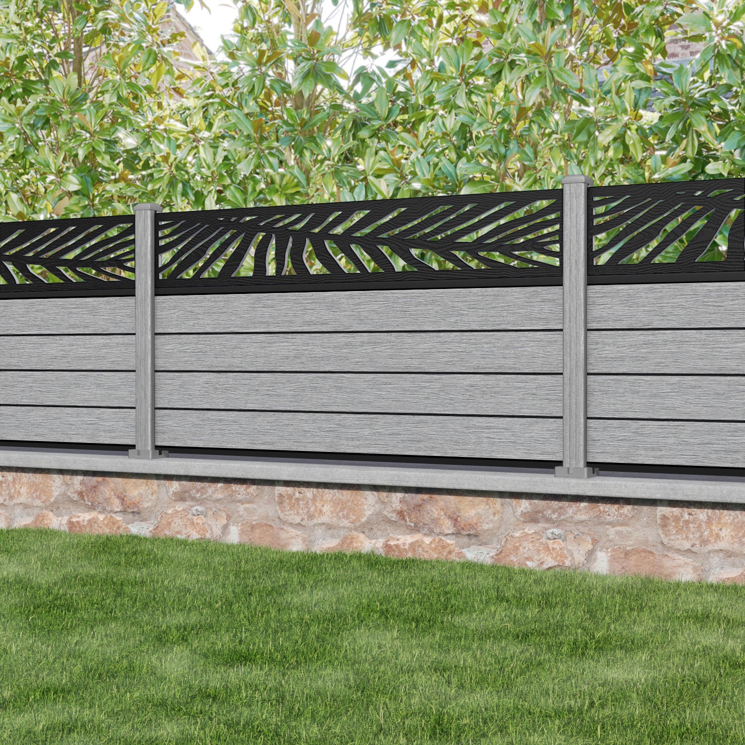 Fusion Palm Fence Panel Light Grey - with our composite posts