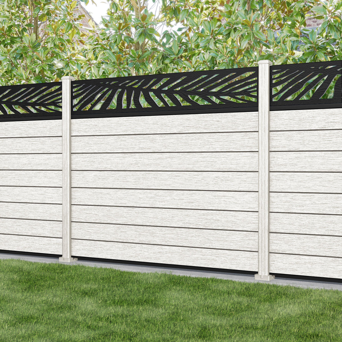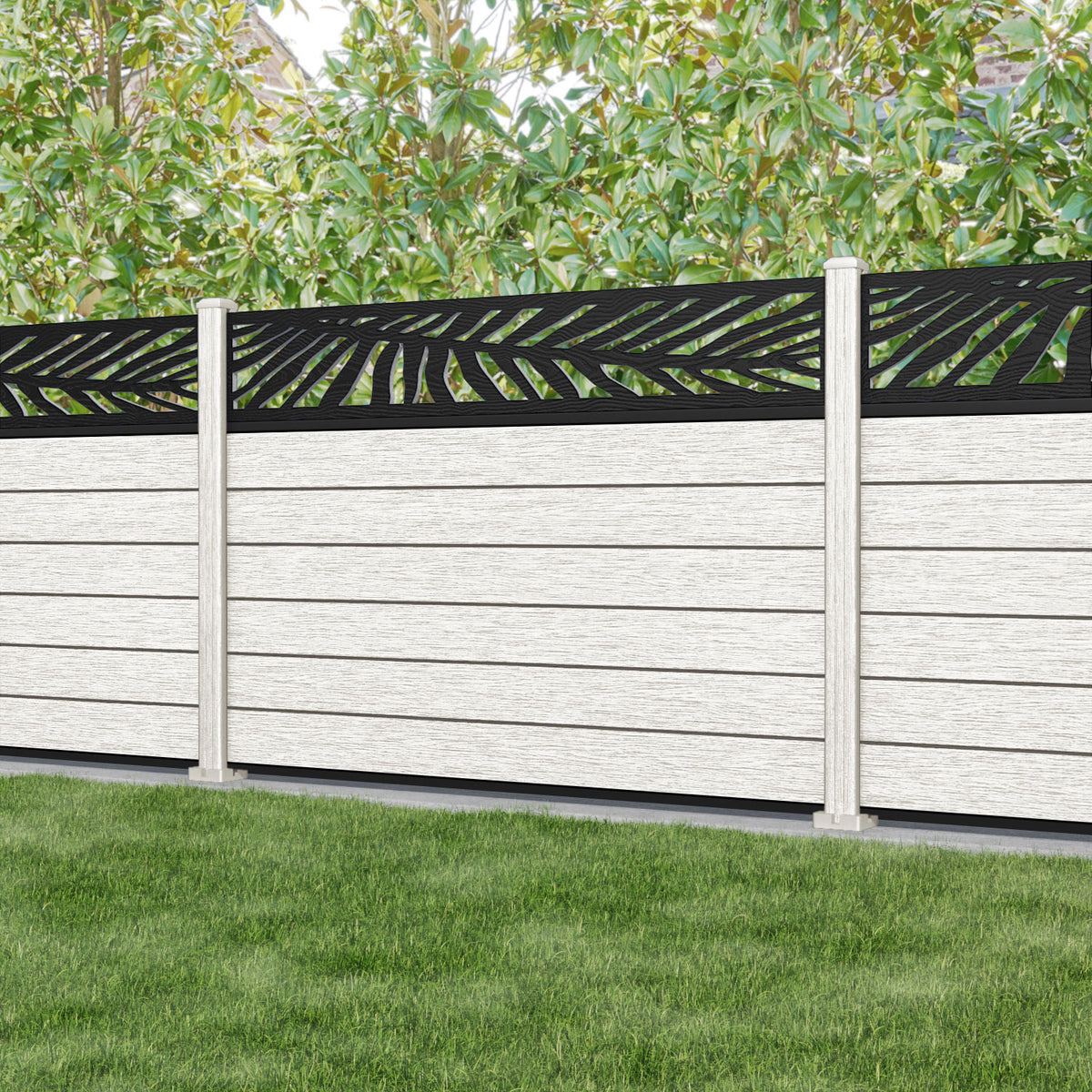 Fusion Palm Fence Panel Light Stone - with our composite posts