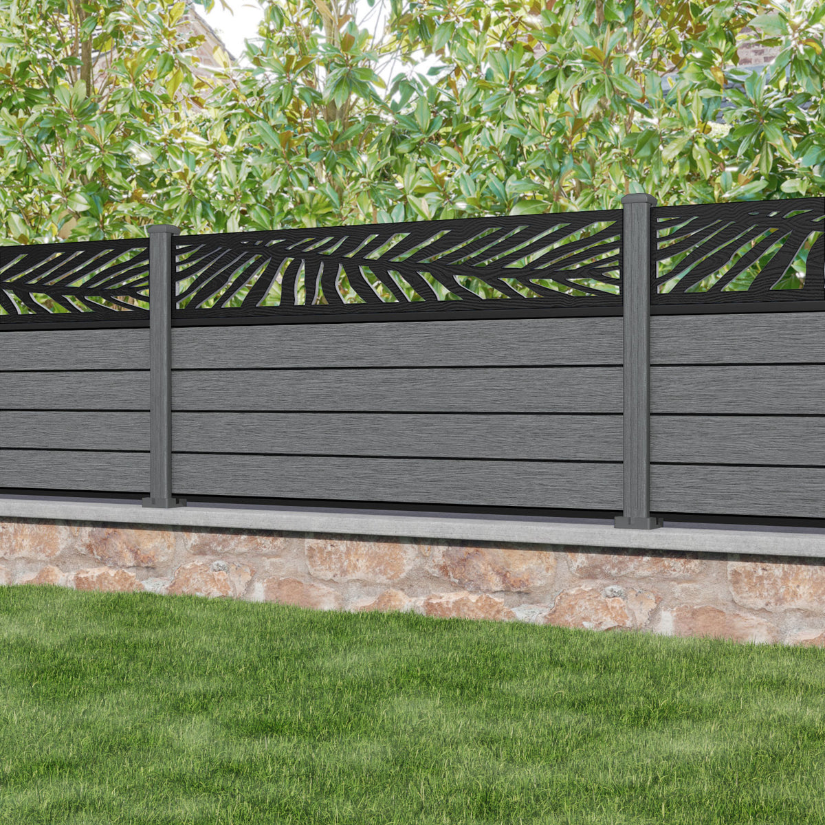 Fusion Palm Fence Panel Mid Grey - with our composite posts