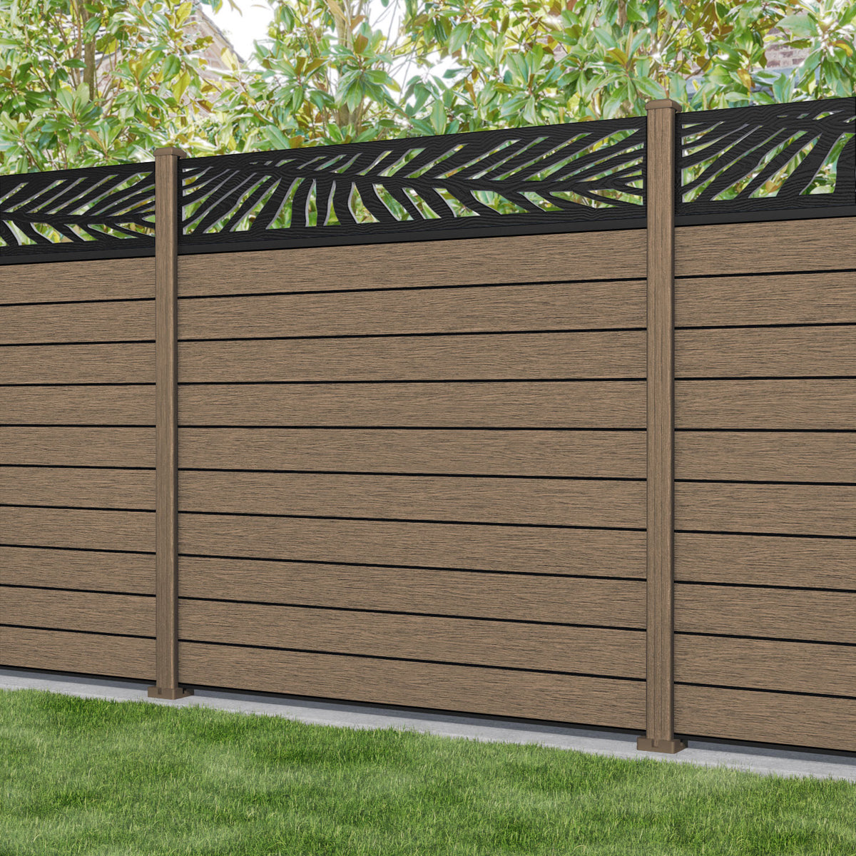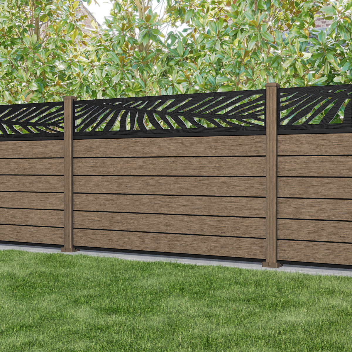 Fusion Palm Fence Panel Teak - with our composite posts