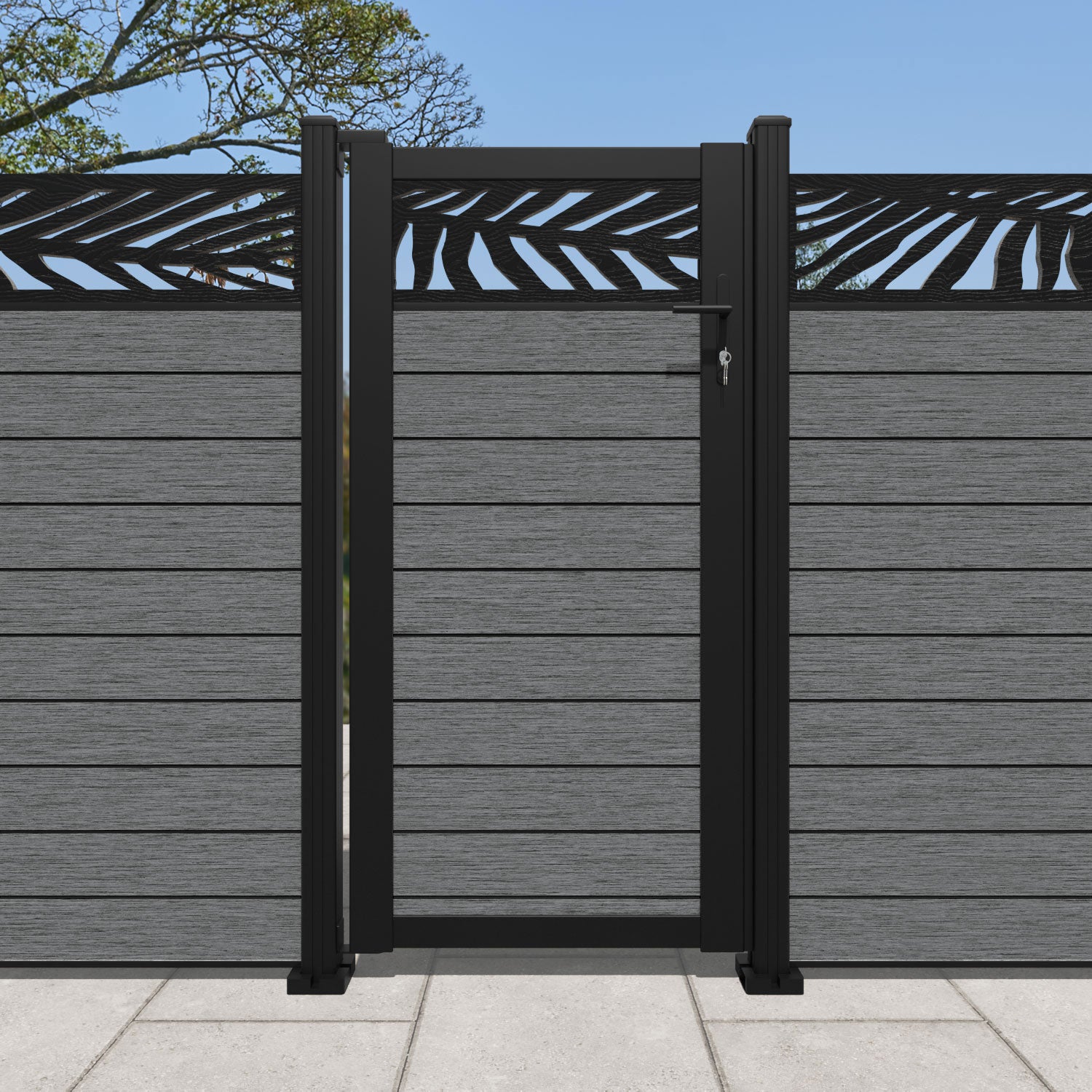 Fusion Palm Pedestrian Gate Mid Grey