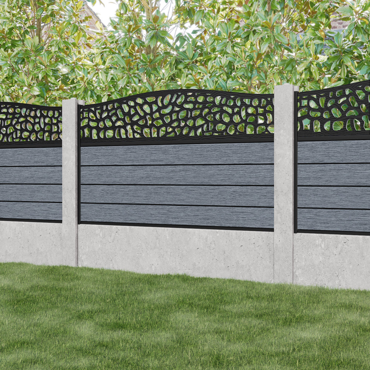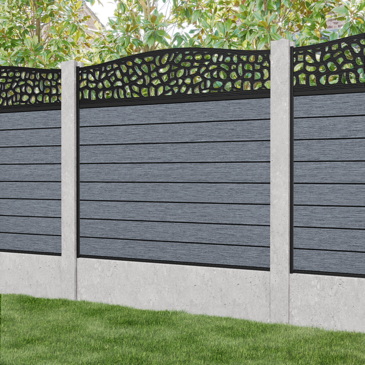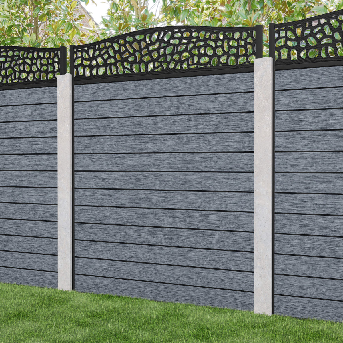Fusion Pebble Curved Top Fence Panel Anthracite - for existing concrete posts